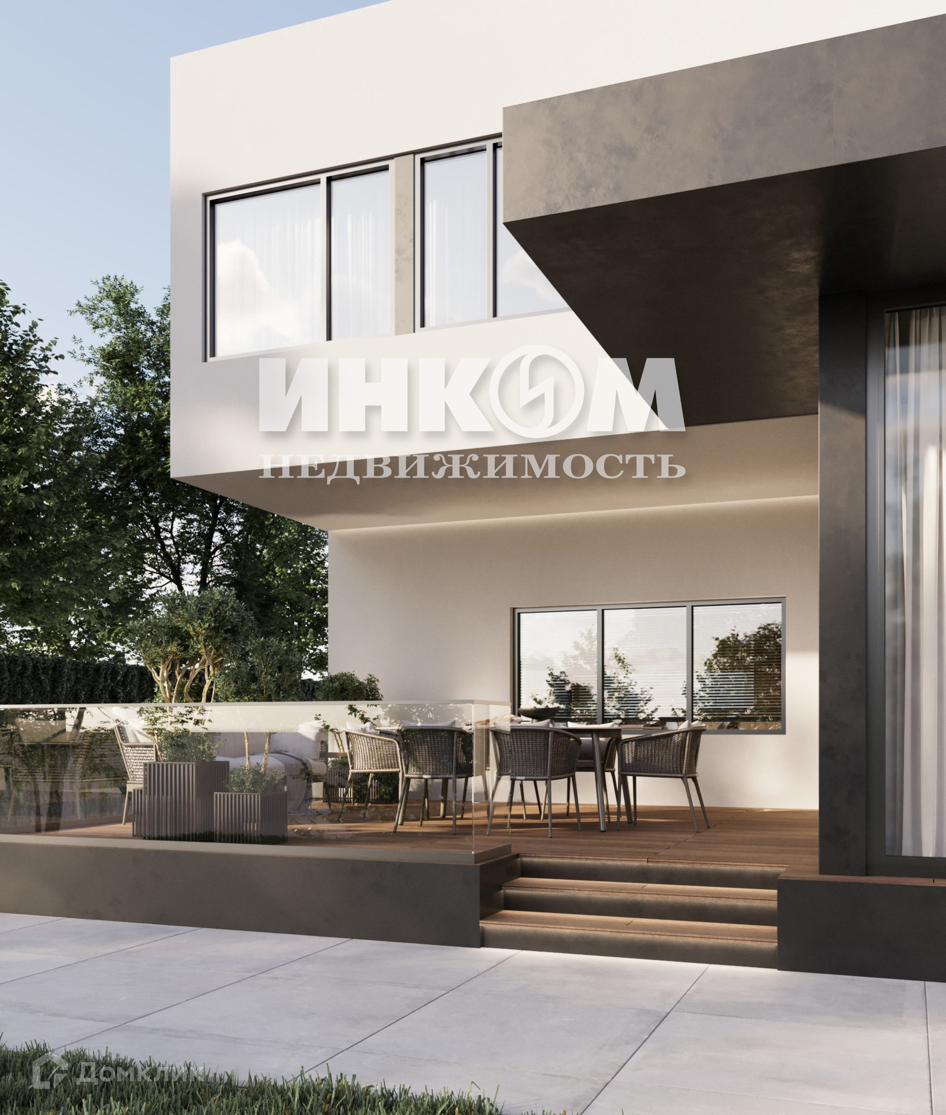 Фундамент и каркас дома выполнены из железобетона. Кровля дома плоская, срок службы более 40 лет. Высота потолков 4,15 м. и 3,43 метра. Панорамные окна на двух этажах, фасад из широкоформатного керамогранита с изысканной подсветкой. Автоматические ворота и калитка, зеленые заборы, газоны, тротуарная плитка. Придомовая площадка с системой анти-обледенения от входной группы до входа в дом. Придомовые дорожки с освещением.