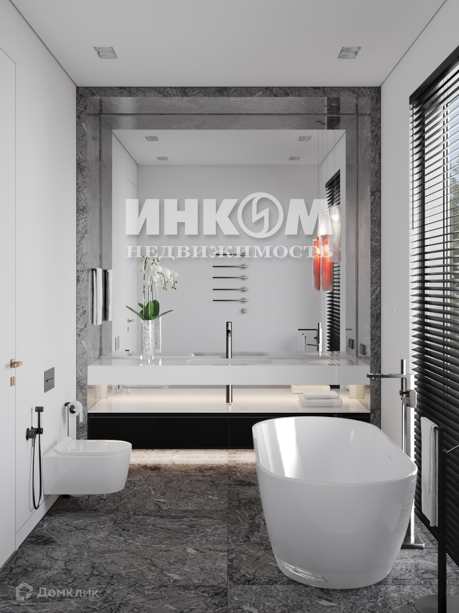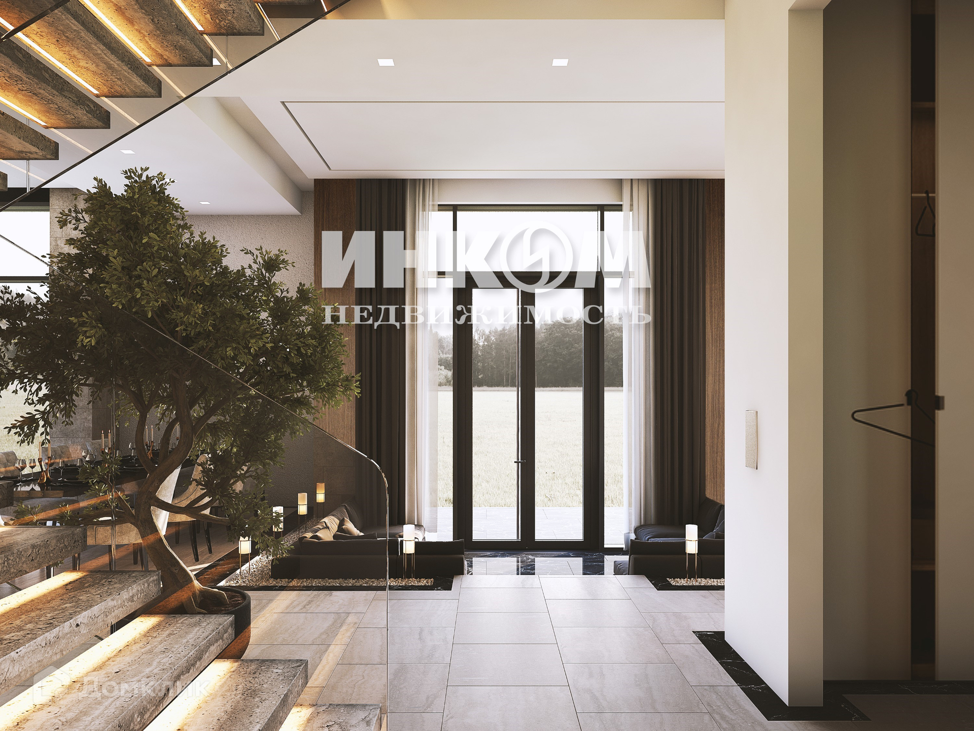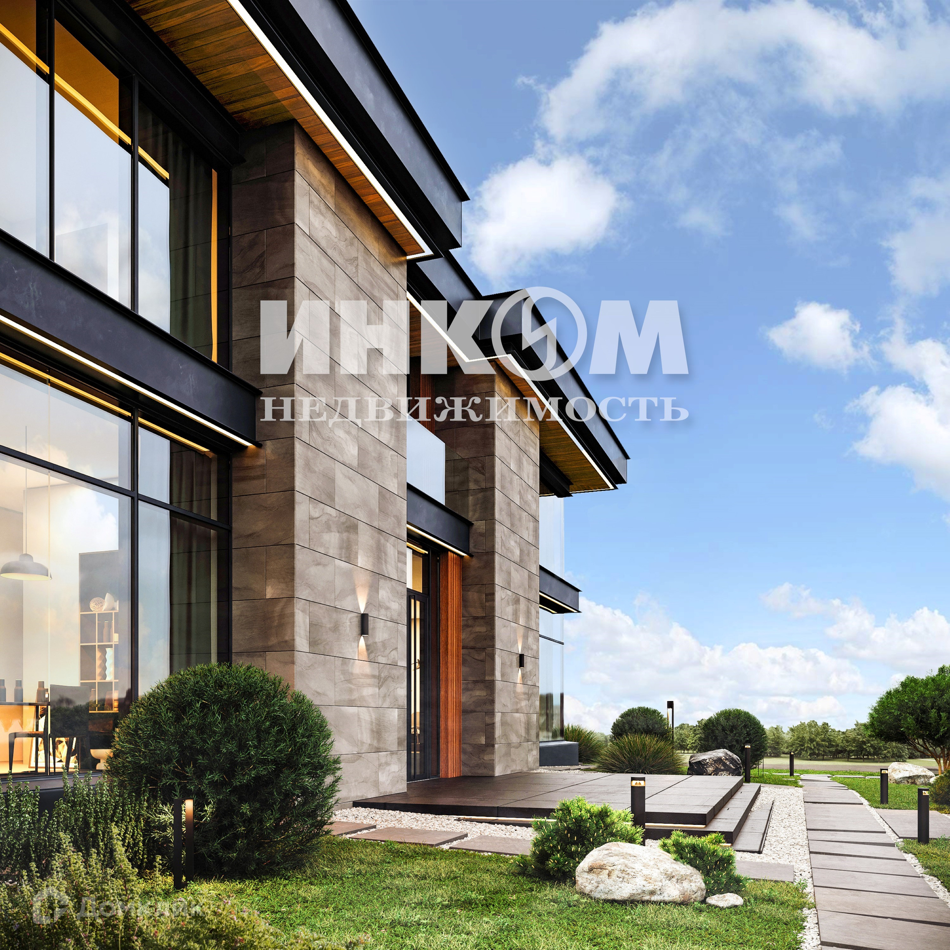 Фундамент и каркас дома выполнены из железобетона. Кровля дома плоская, срок службы более 40 лет. Высота потолков 4,15 м. и 3,43 метра. Панорамные окна на двух этажах, фасад из широкоформатного керамогранита с изысканной подсветкой. Автоматические ворота и калитка, зеленые заборы, газоны, тротуарная плитка. Придомовая площадка с системой анти-обледенения от входной группы до входа в дом. Придомовые дорожки с освещением.