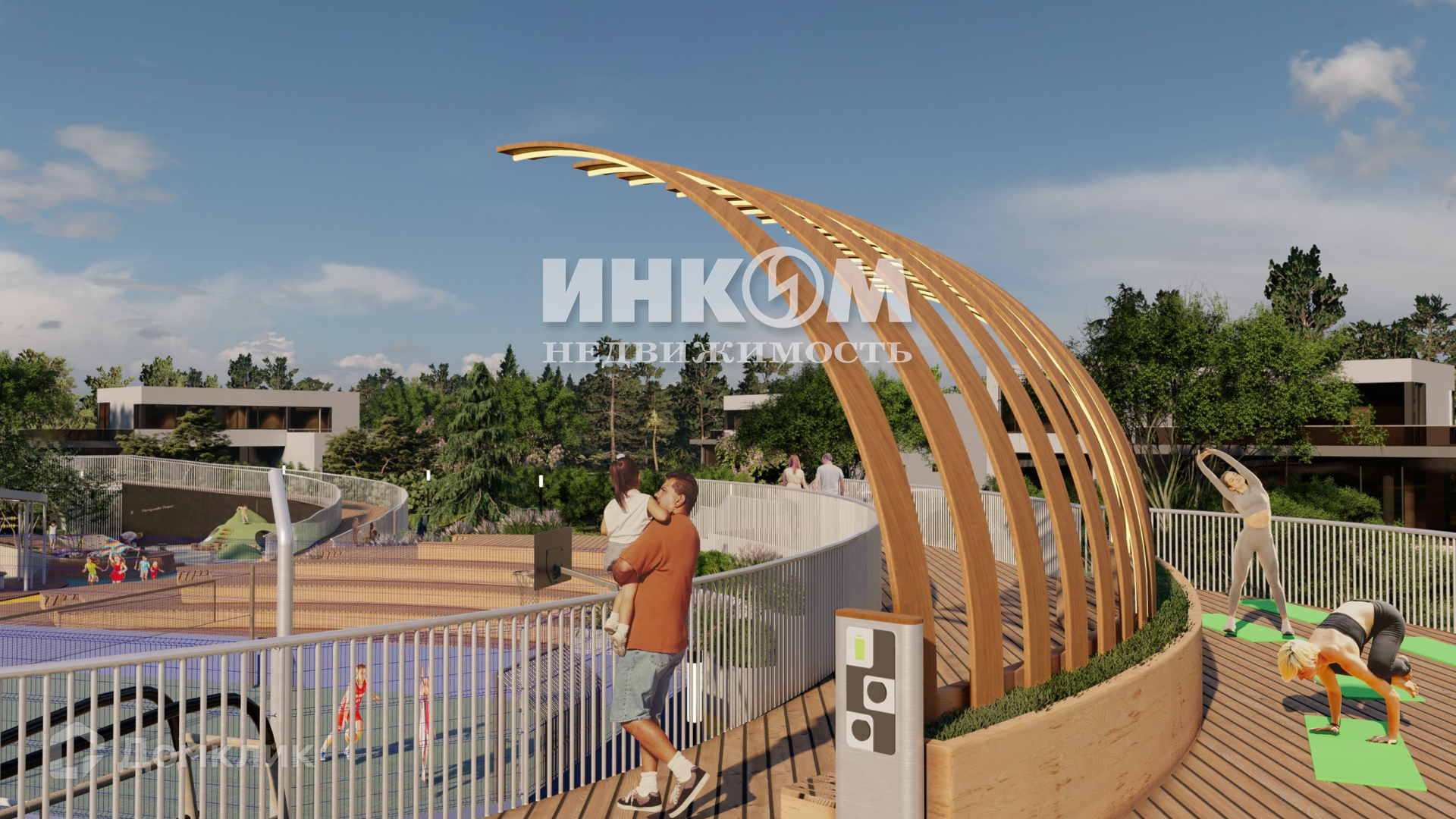 ресторан, детский сад, фитнес с открытым бассейном, СПА, ландшафтный парк, Экотропы, винотека, аптека, барбершоп. Безбарьерная среда. Вело и самокатные парковки