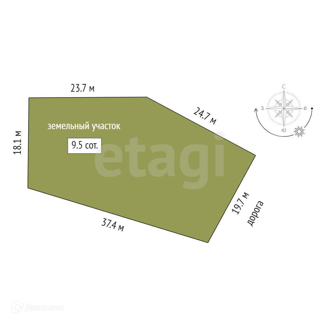 Площадь участка 9.5 сот.