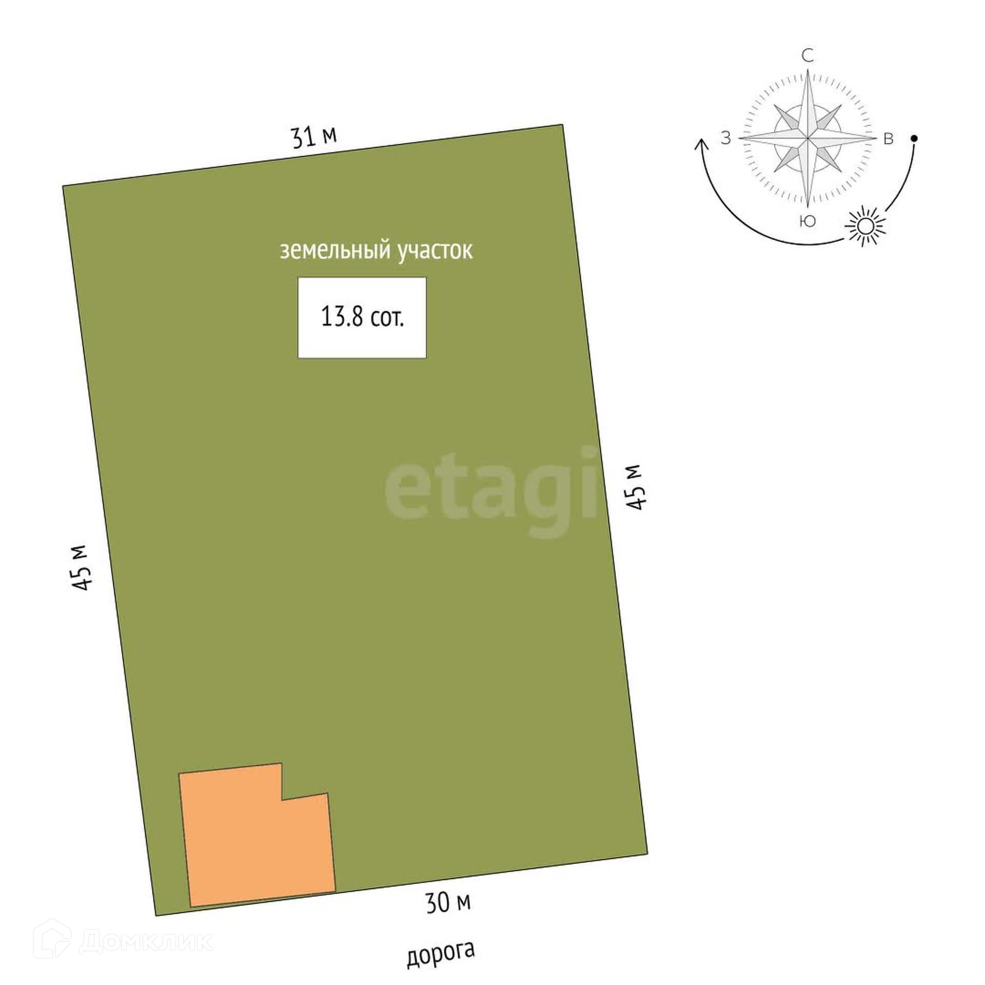 Площадь участка 13.8 сот.