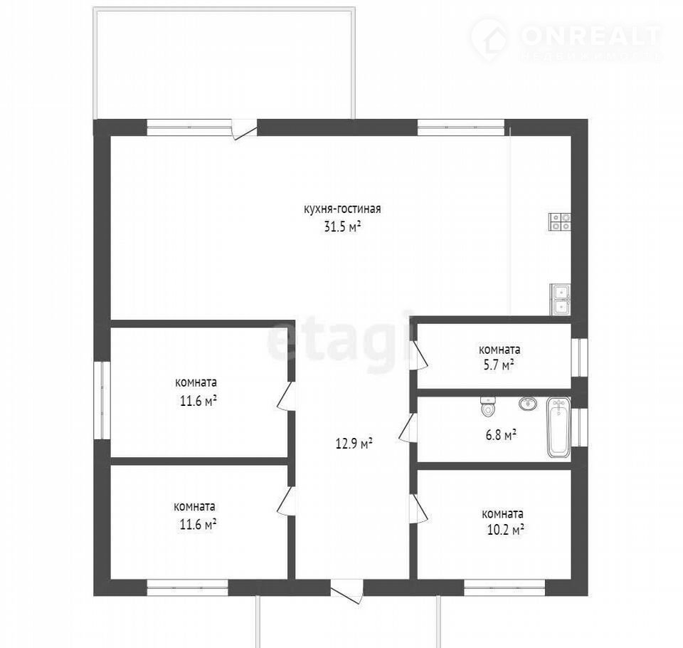 1-этажный дом, 91 м2, на продажу в деревне Паренкиной