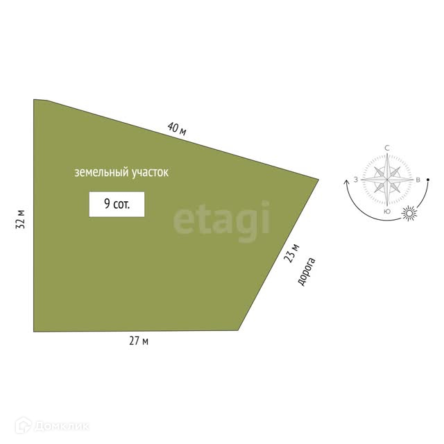 Площадь участка 9 сот.