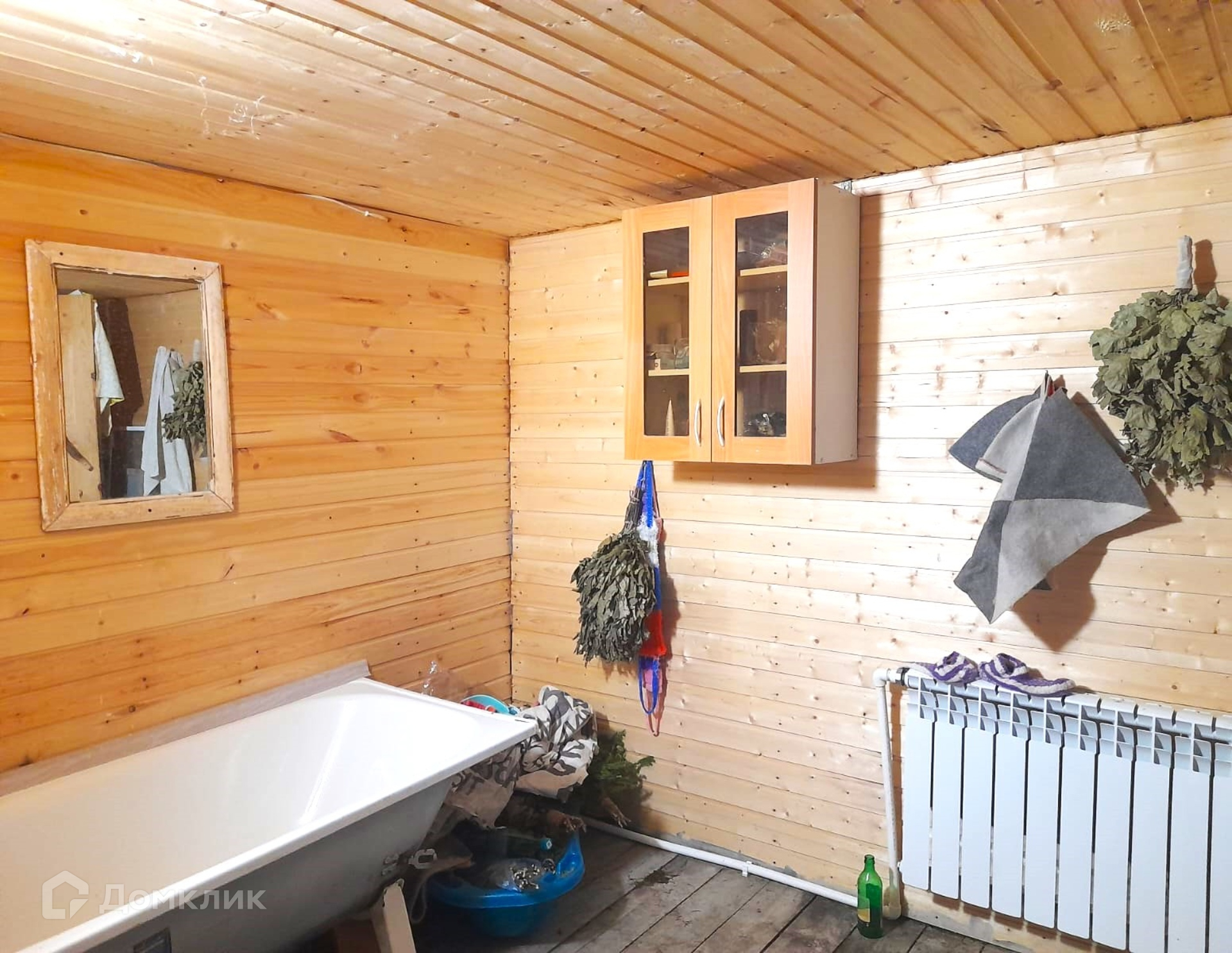Имеется баня внутри дома. Дровник, теплица.