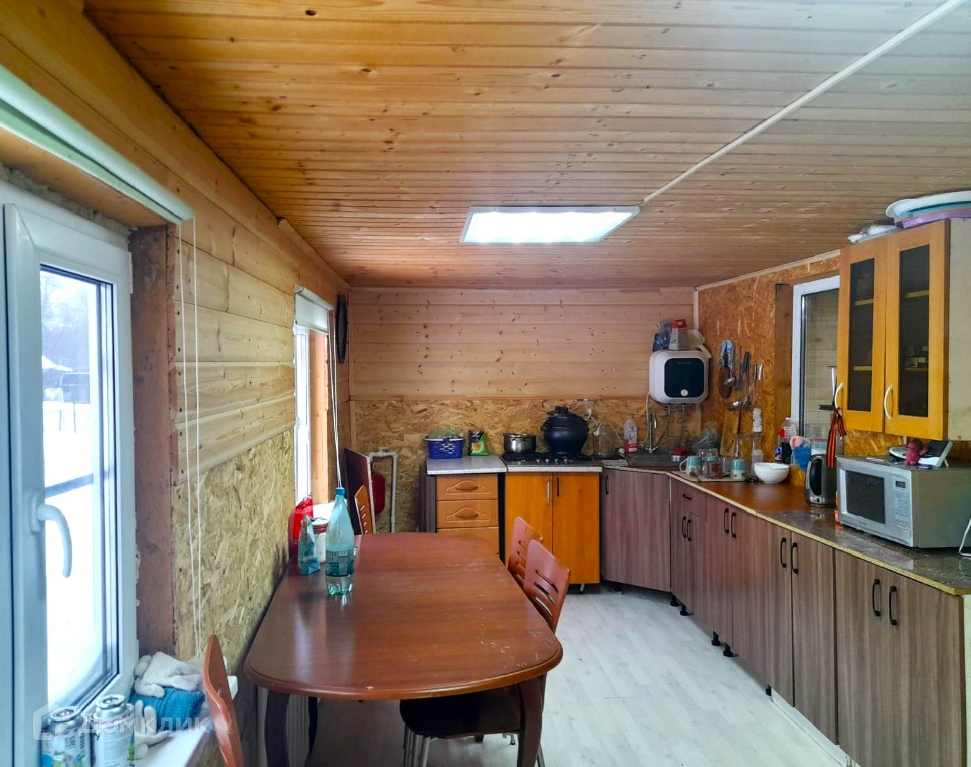 Площадь дома 80 кв.м. каркасник, внутри обшит вагонкой, не оформлен.