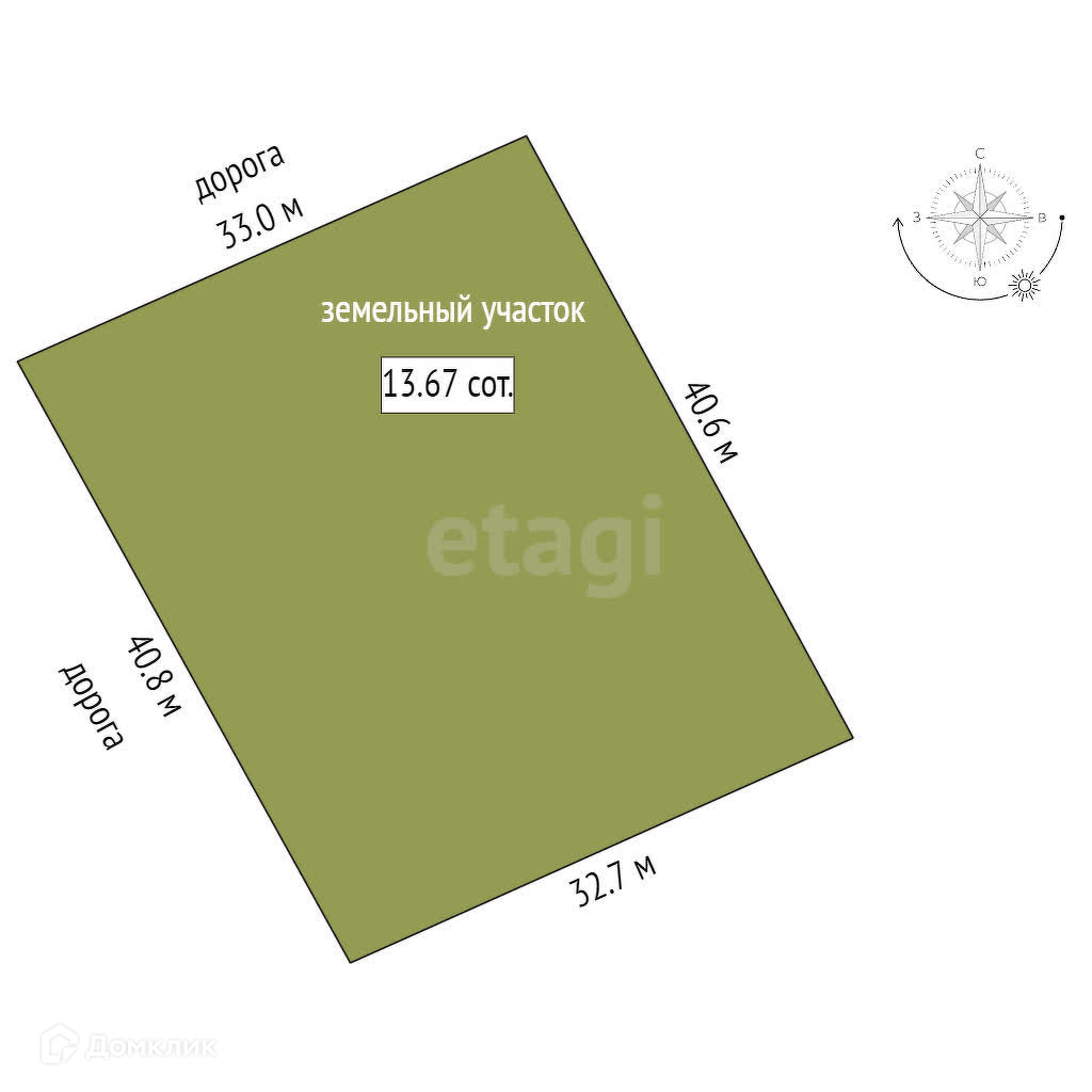 Площадь участка 13.67 сот.