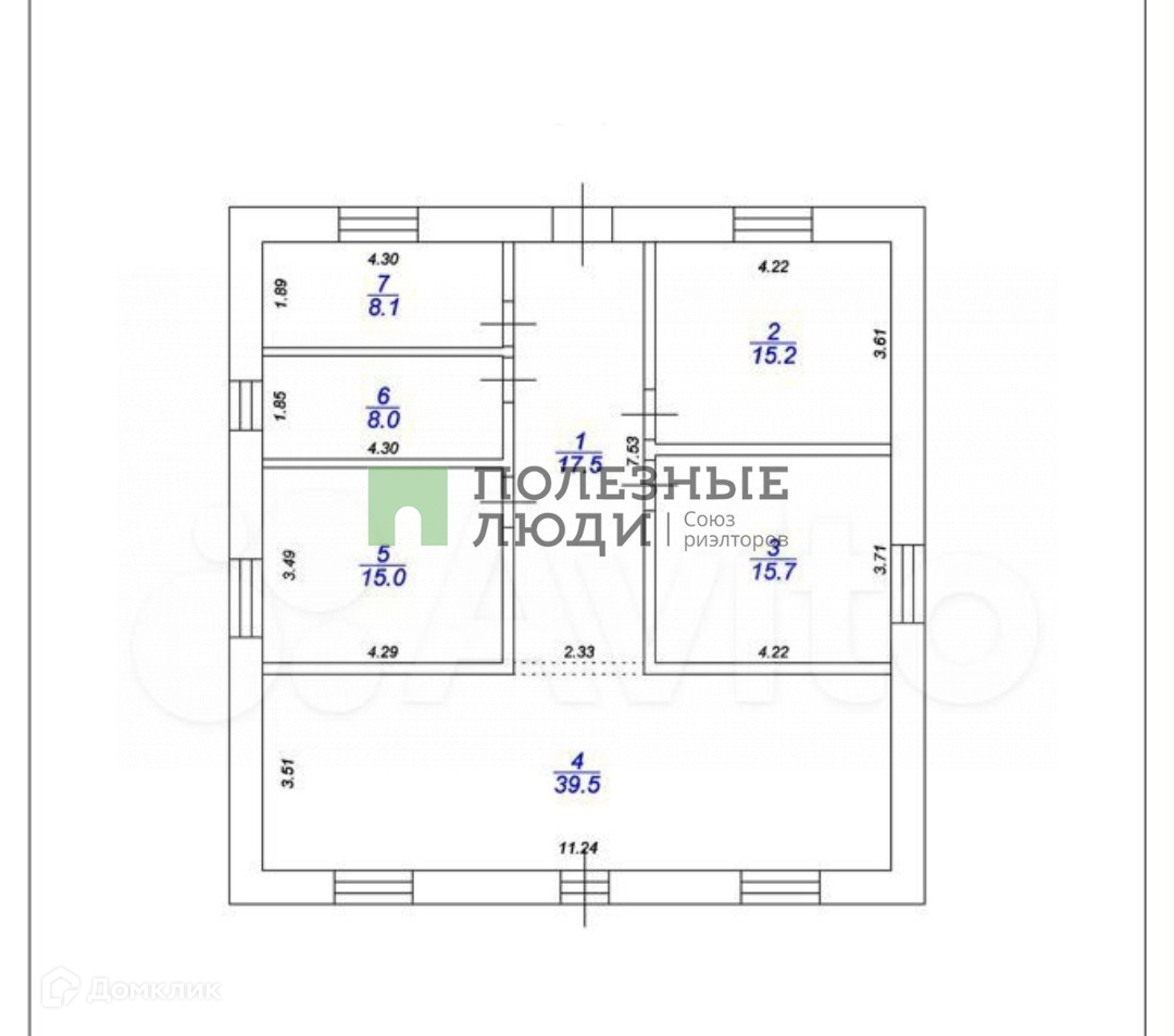 Площадь дом 135 м2, комнаты все квадратные площадью 15 м2, просторная прихожая 17 м2, санузел 8 м2, котельная 8 м2, кухня-гостиная 40 м2 с выходом на задний двор. высота потолков 3.5 м. Установлены окна, двери входные и двери за задний двор. Под всей площадью дома имеется подвал, высота потолка в подвале 2м.