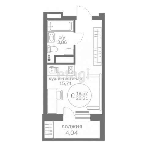 Общая площадь 24 м2