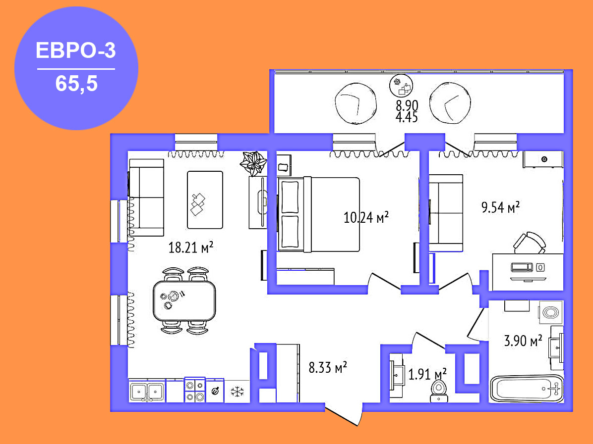 • В квартире выполнена улучшенная предчистовая отделка: качественная стяжка пола, которая позволит без лишних затрат уложить любое напольное покрытие, стены выровнены под маяк, готовы к поклейке обоев или покраске, стальная входная дверь, не требующая замены, трехкамерные стеклопакеты, лоджии остеклены.