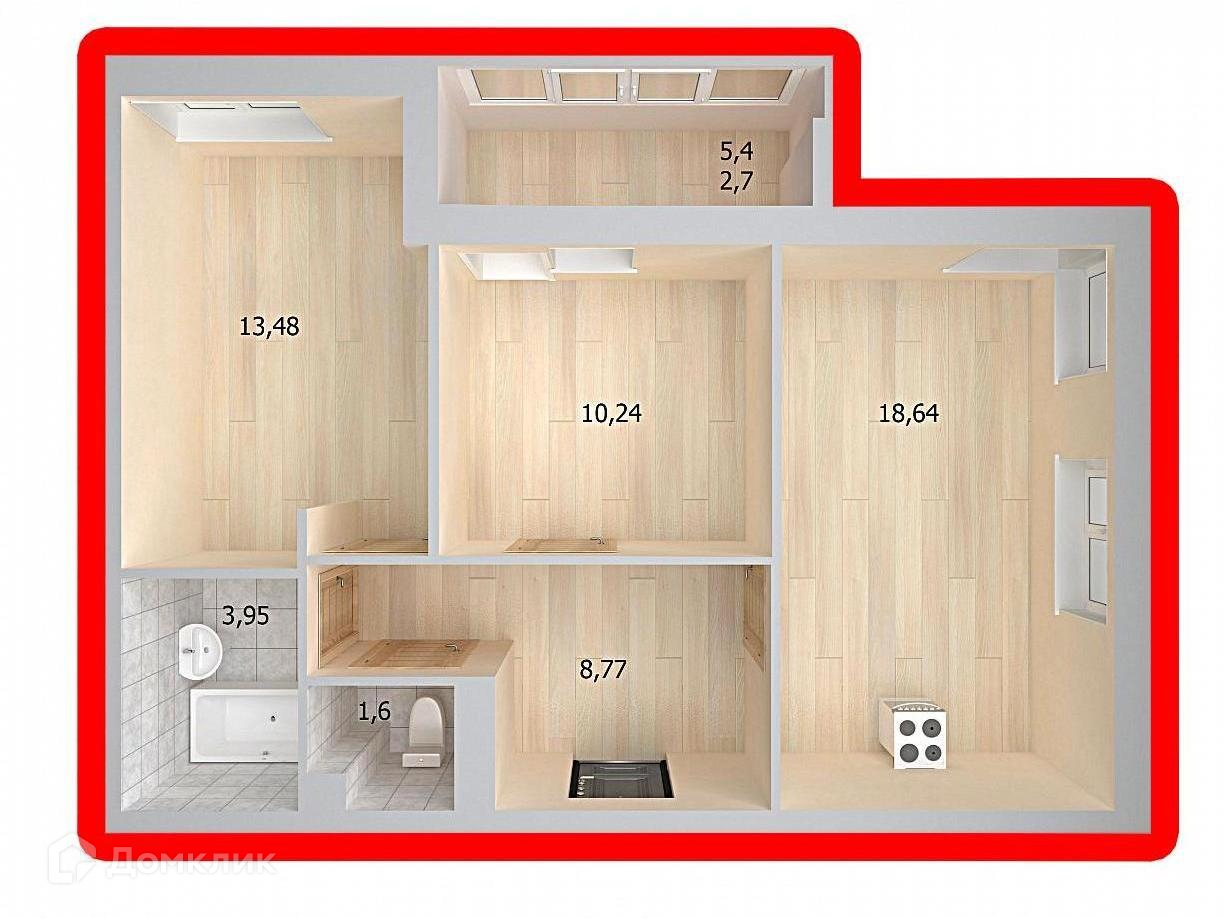 Общая площадь 57.9 м2