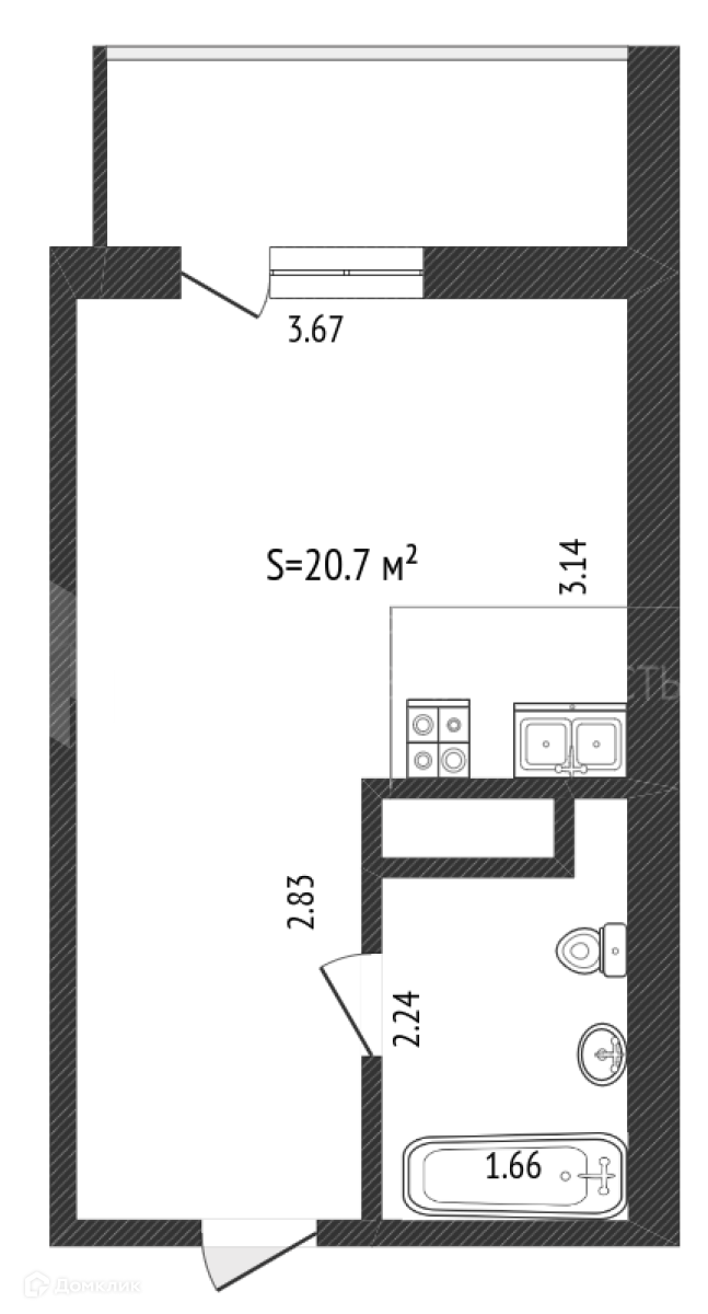 Общая площадь 20.7 м2