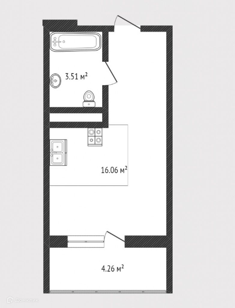 Общая площадь 20.4 м2