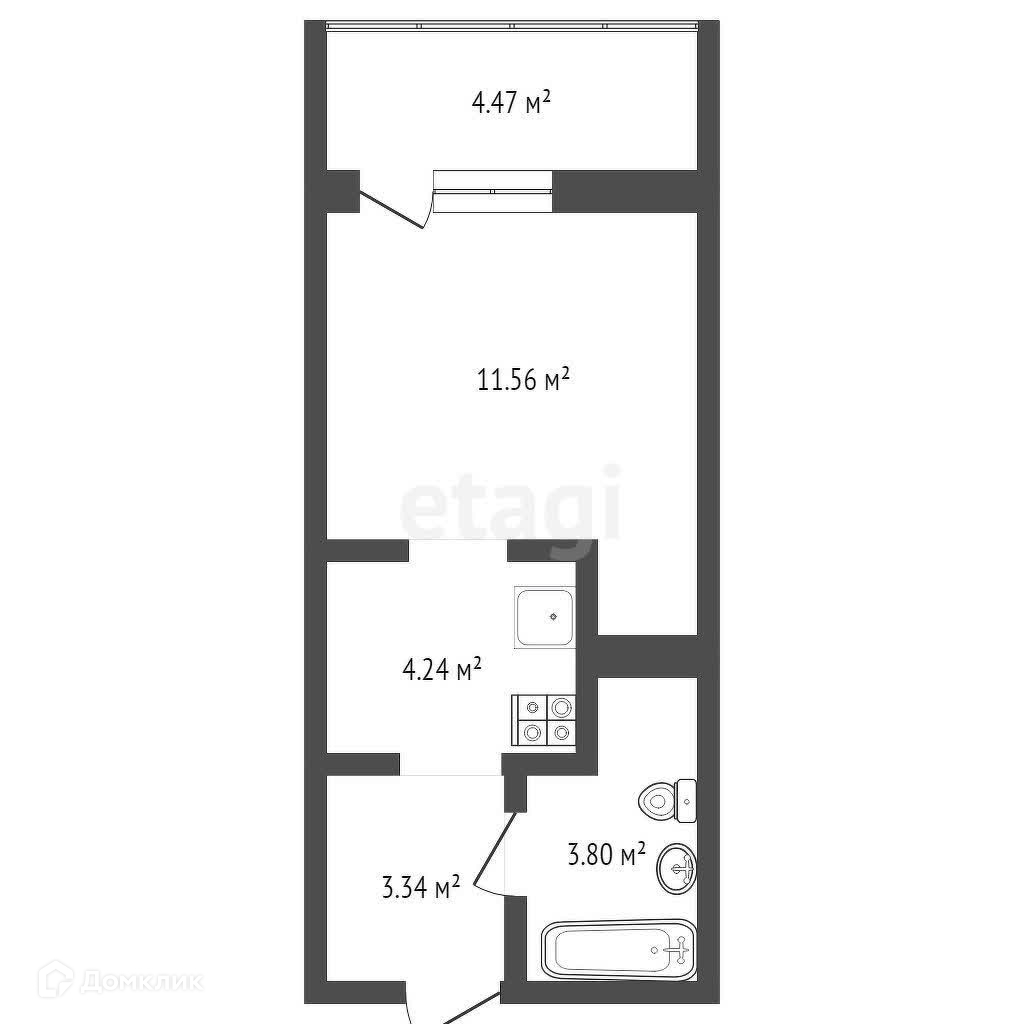Общая площадь 23.5 м2