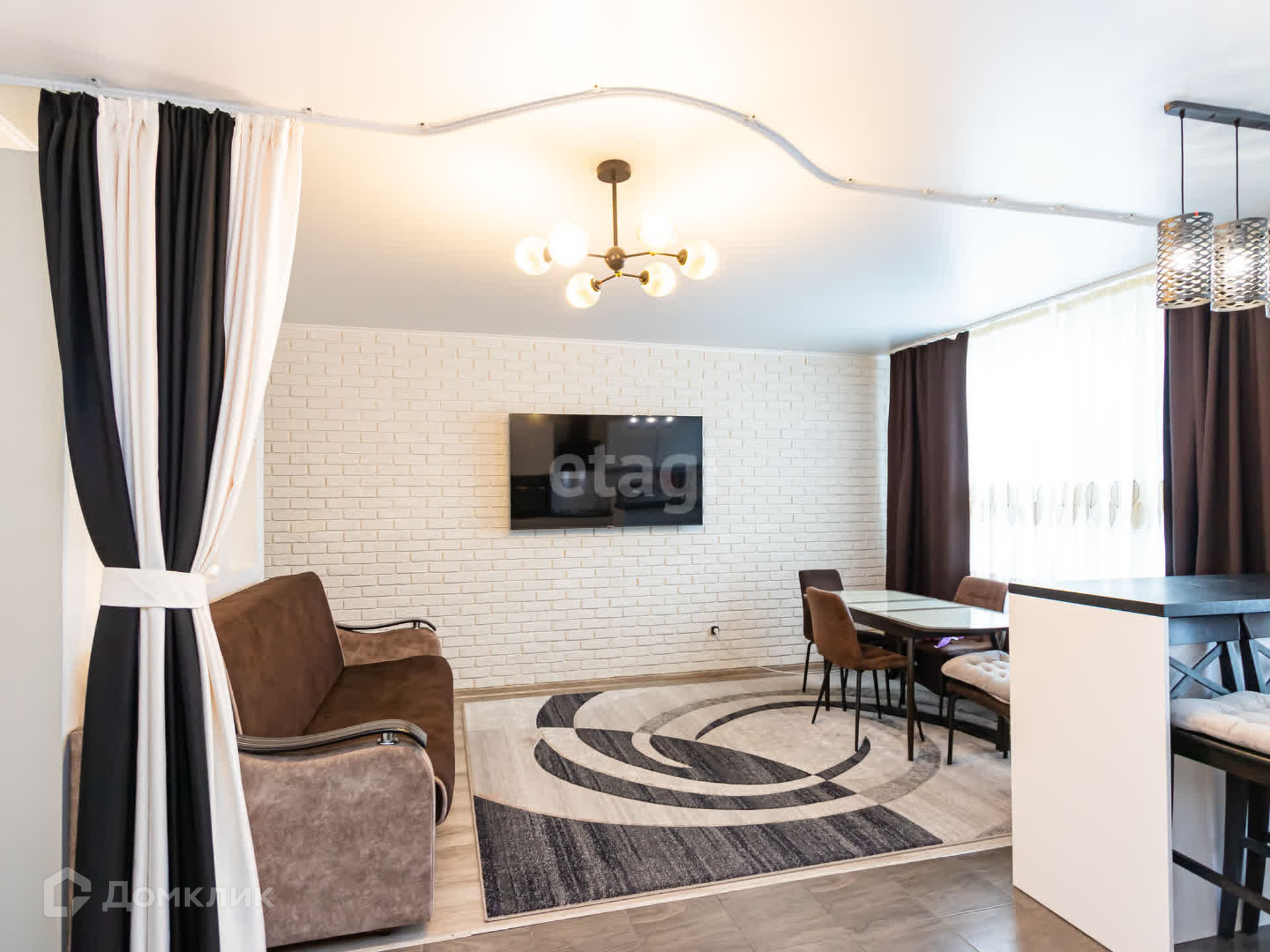 - Кухонная зона отделяется от гостевой светонепроницаемыми занавесками.