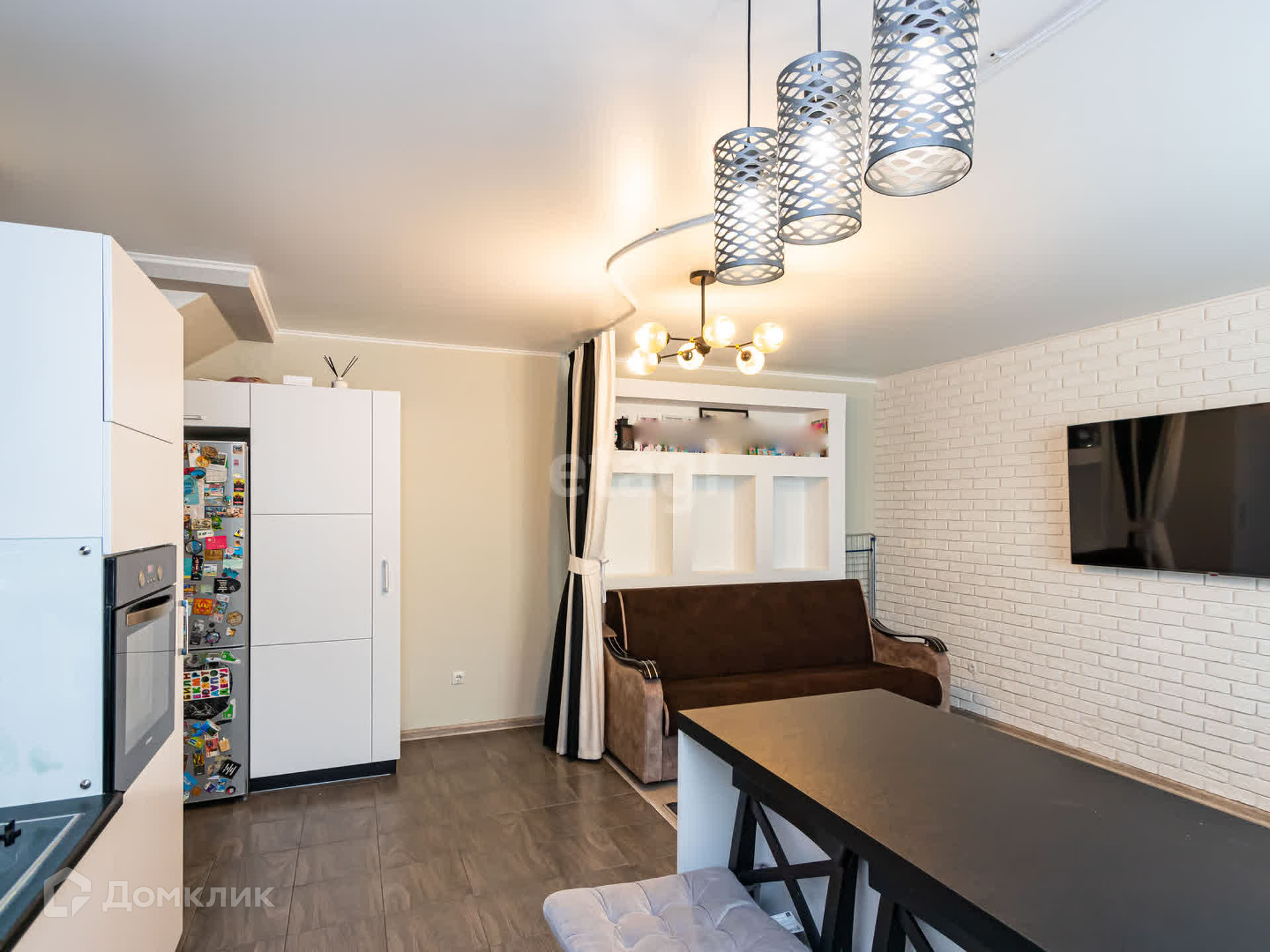 - Большaя кухня-гоcтиная (26 м2). Установлен электрический теплый пол.
