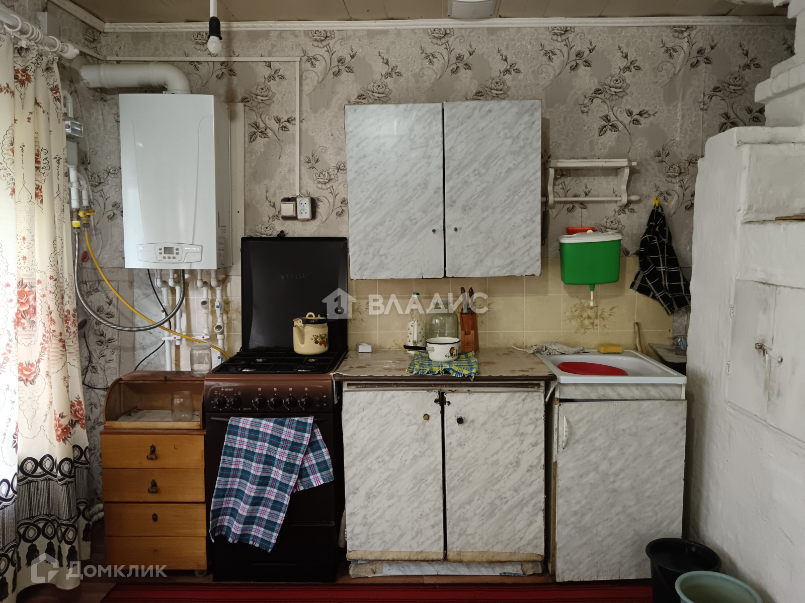 Крепкий, добротный, бревенчатый дом на высоком киричном фундаменте общей площадью - 38 кв м. В доме 1 большая комната, просторная кухня, прихожая. Индивидуальное отопление от навесного газового котла, так же имеются 2 действующие печки (в комнате и на кухне) - отопление на Ваш выбор! Окна ПВХ, кроме террасы и 1ого окна из 2х на кухне. Полы не скрипят. Светлая и очень уютная терраса, подсобные помещения для хранения банок и иного бытового/хозяйственного инвентаря. Вода от собственного колодца перед домом (не замерзает зимой), электричество. Туалет в прохладной части дома (выгребная яма). Абсолютно сухое подполье для хранения закаток.