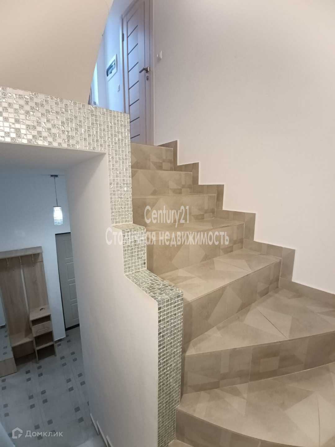 1 этаж: Застекленная веранда с панорамными окнами, мастерская с зоной хранения садового инвентаря и велосипедов, просторная кухня-гостинная и большая прихожая, два санузла: гостевой туалет и ванная комната, бетонная лестница на второй этаж отделанная плиткой.