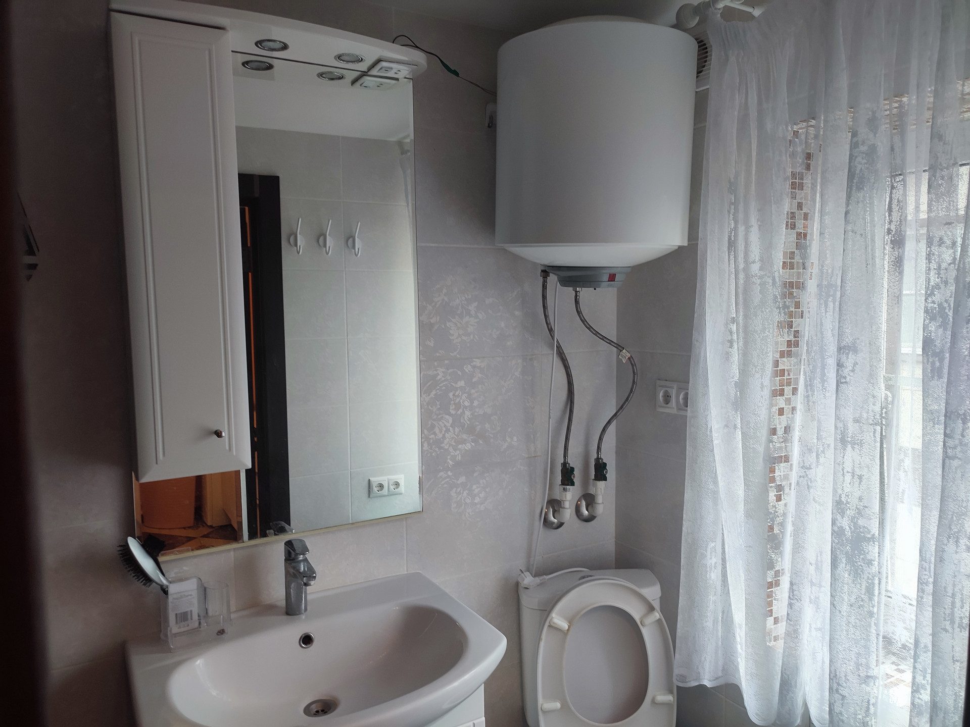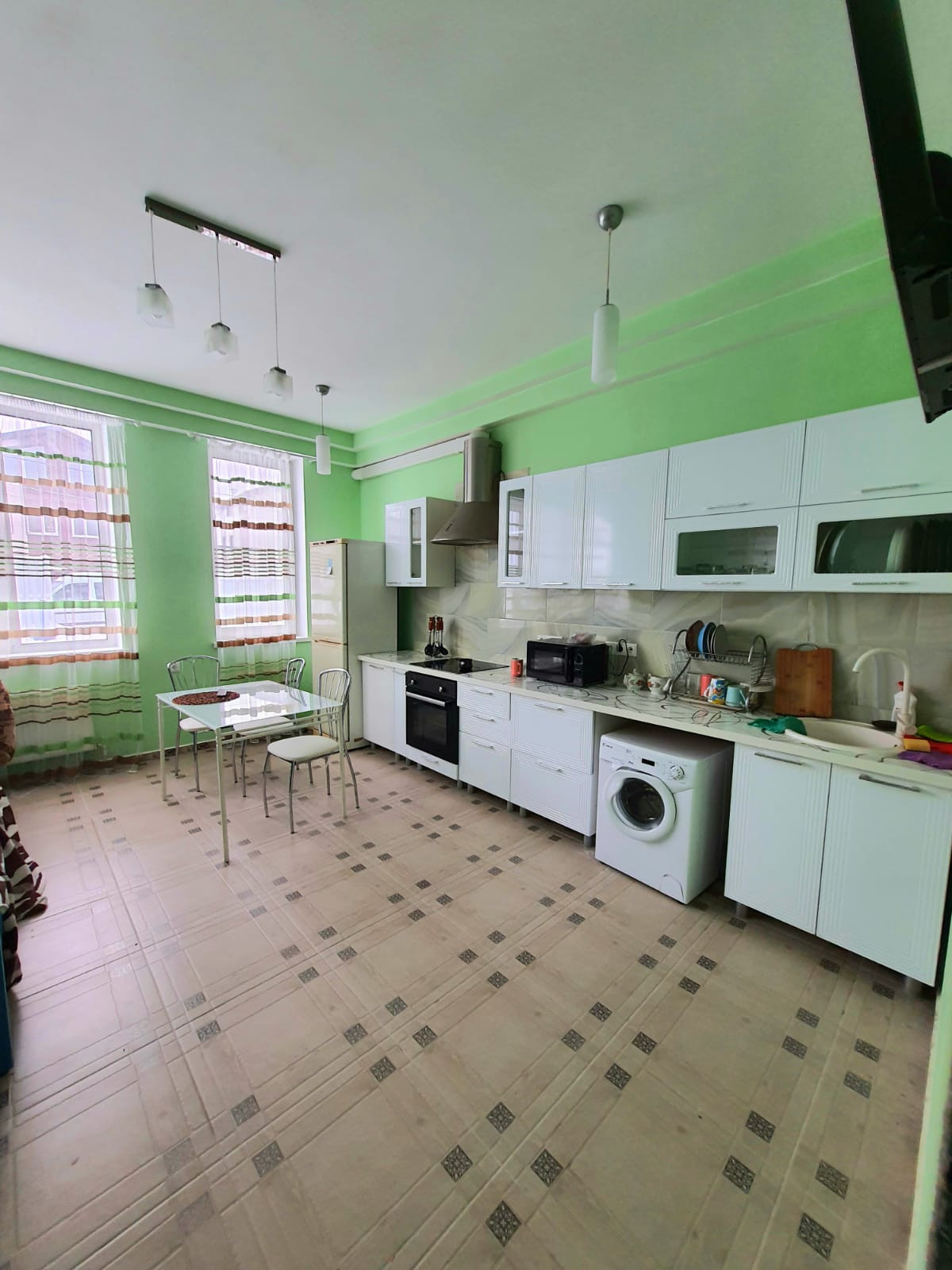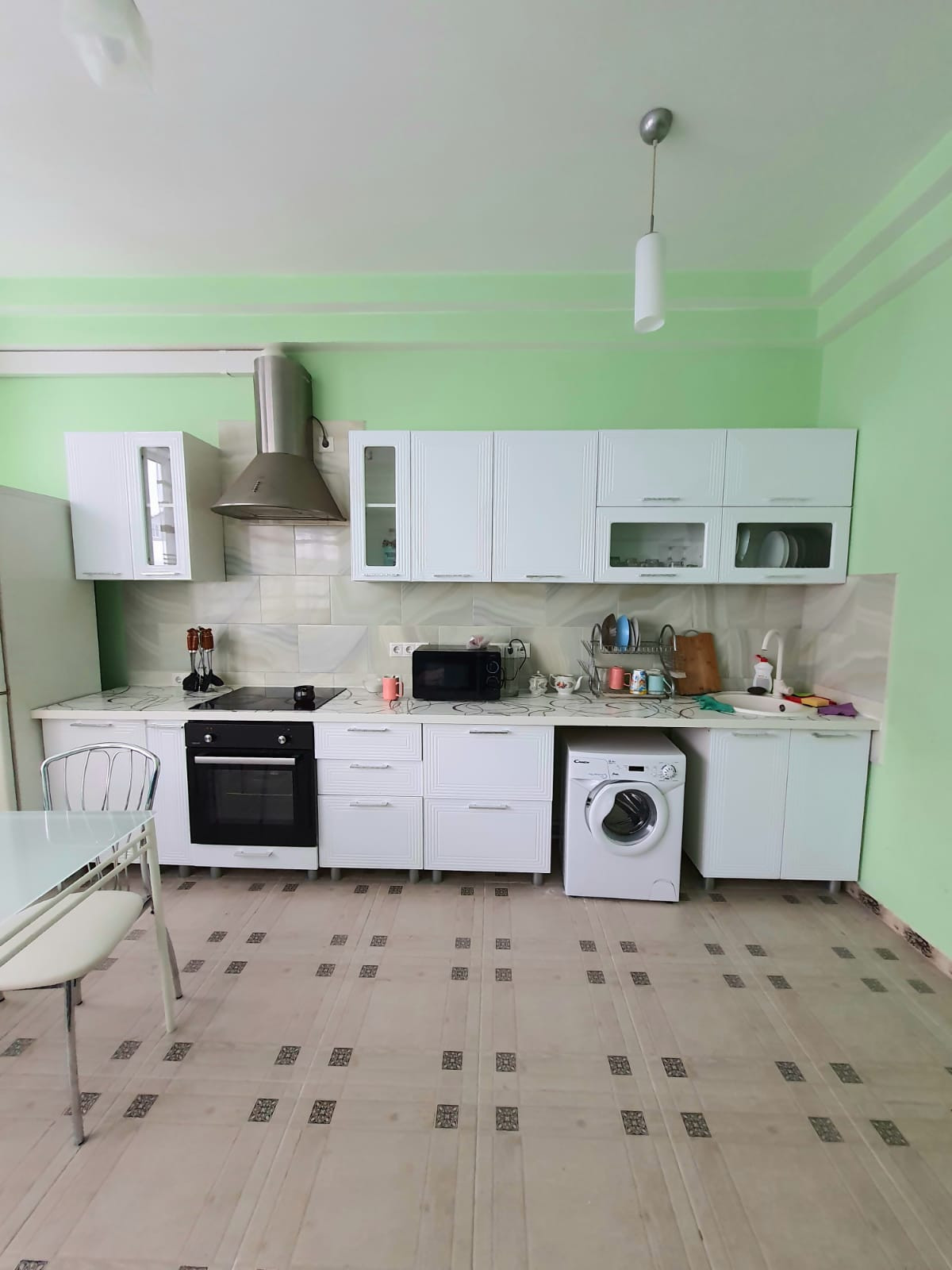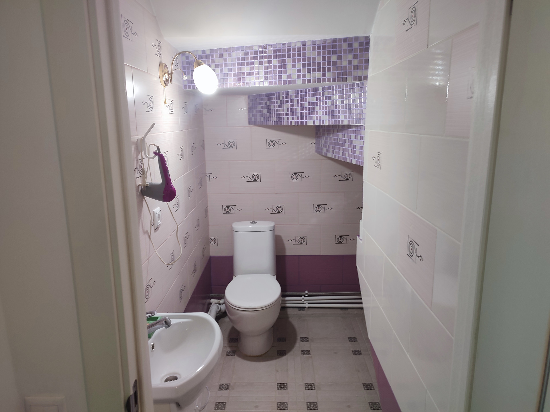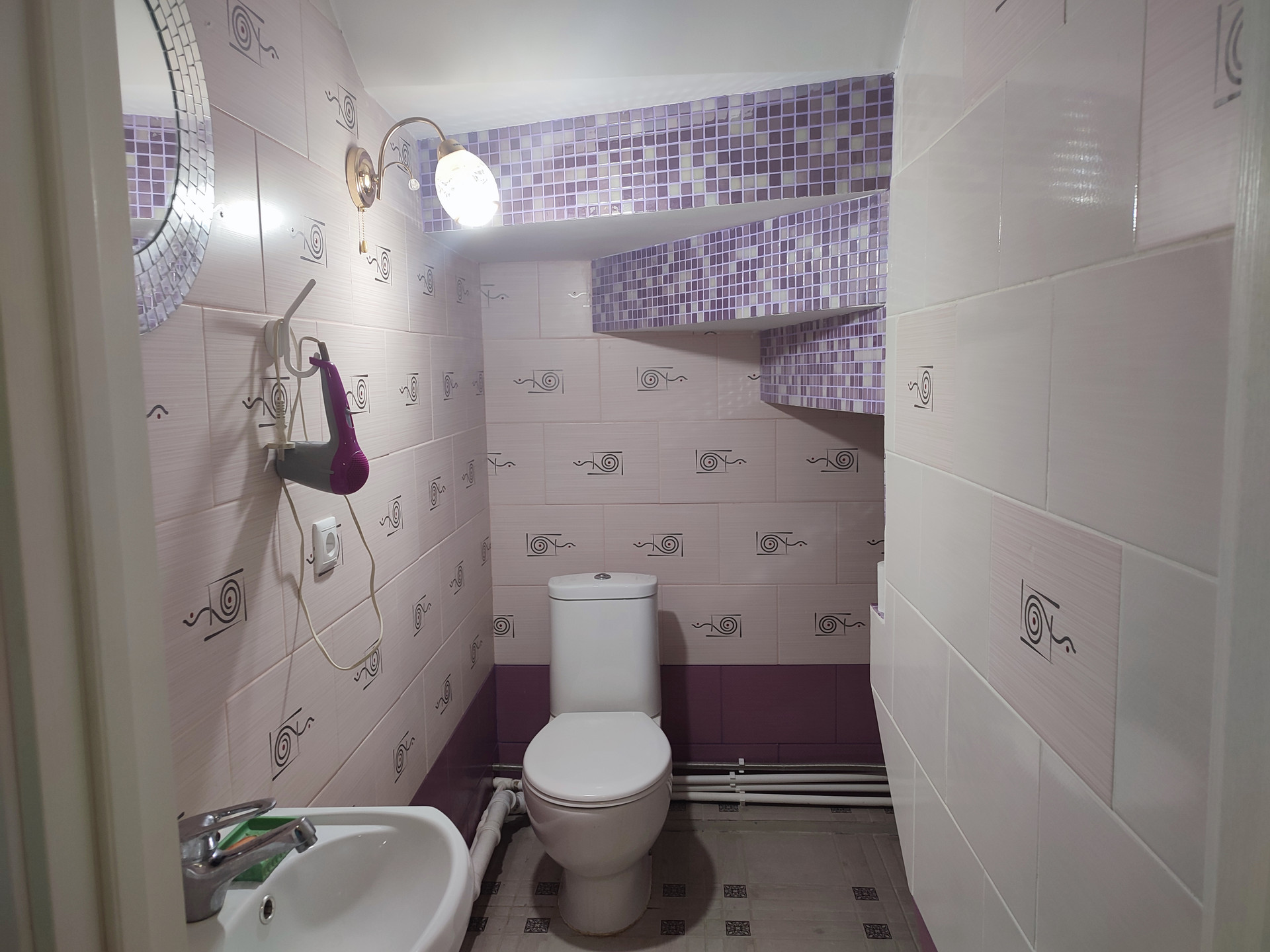 - все полы выложены из кафеля, ремонта вам хватит надолго;