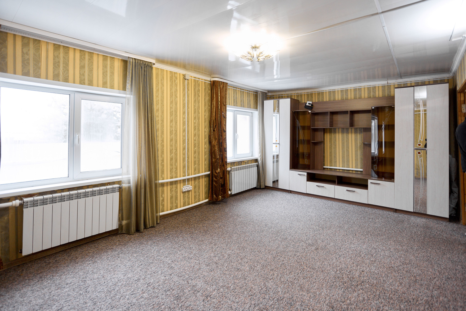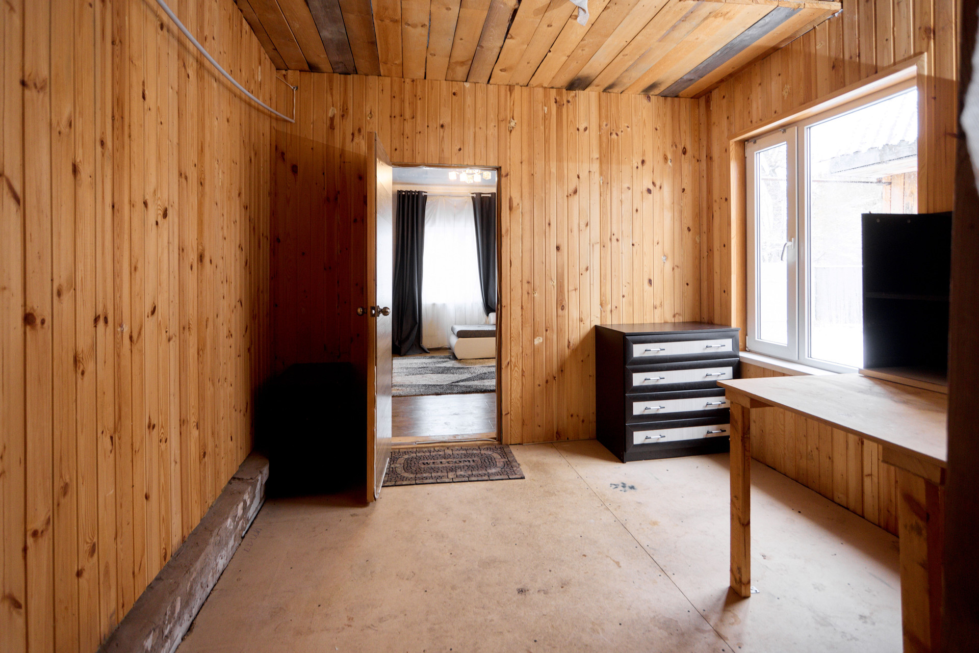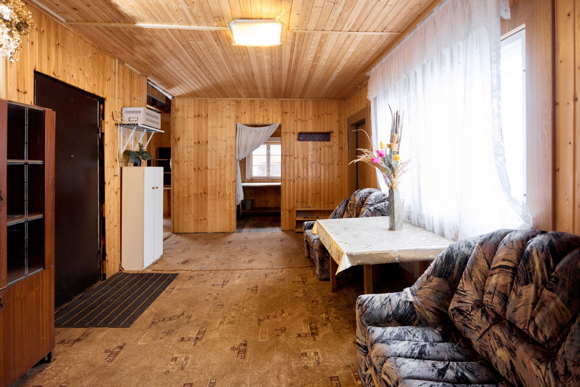 В доме две комнаты одна в бревенчатой части, другая в пристройке.