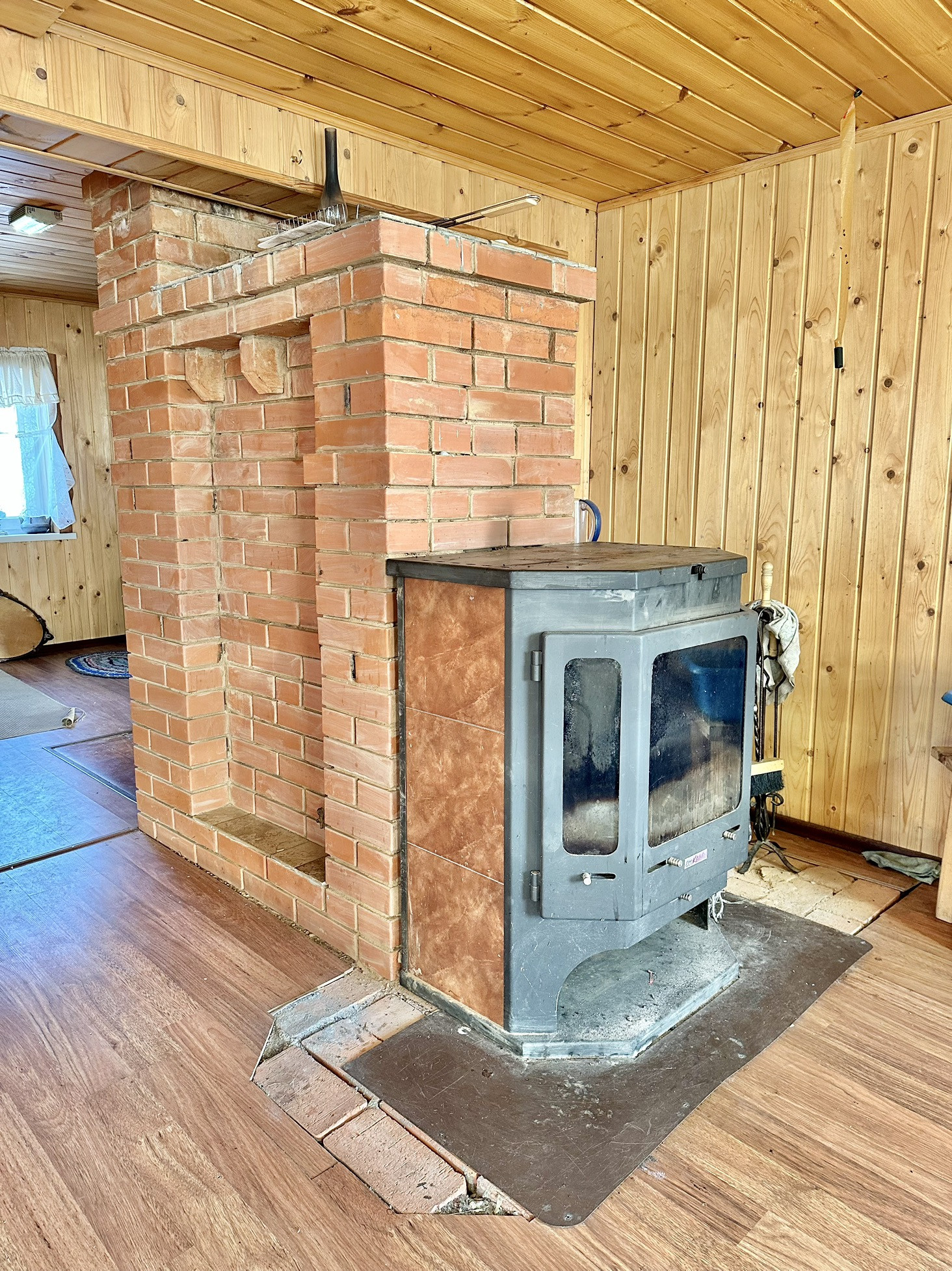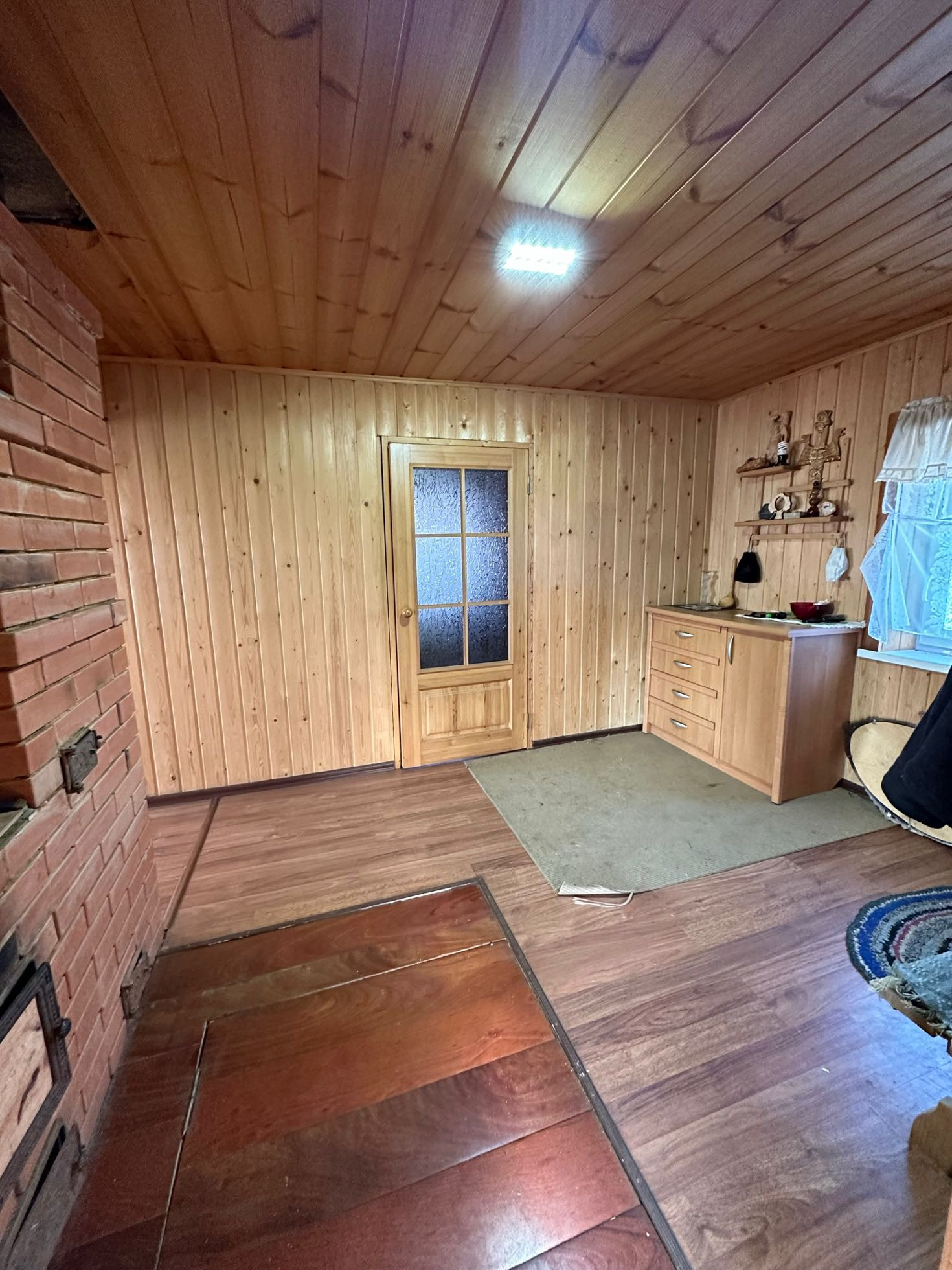 - отопление - добротная русская печь с современным камином (на фундаменте) и при необходимости электрические конвектора