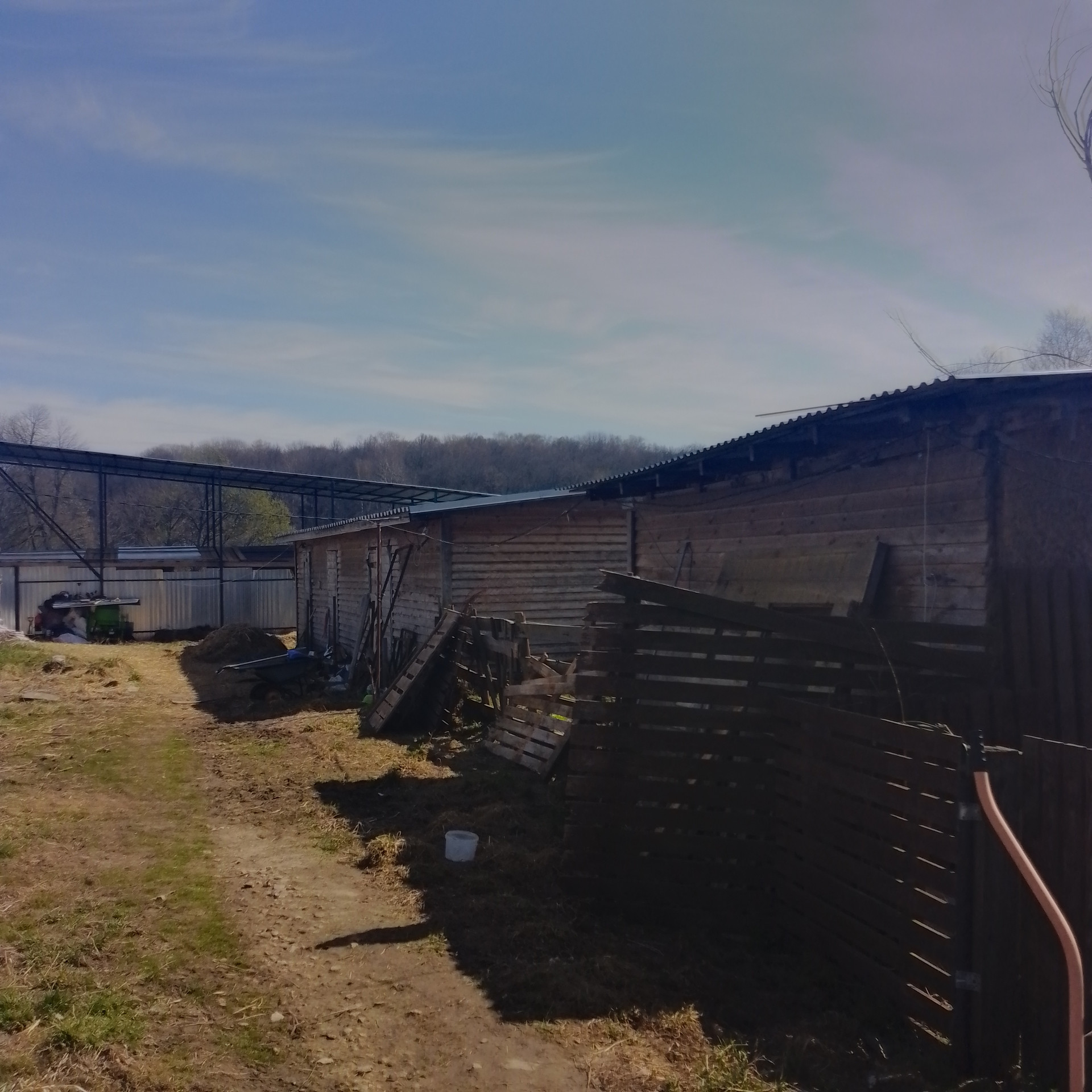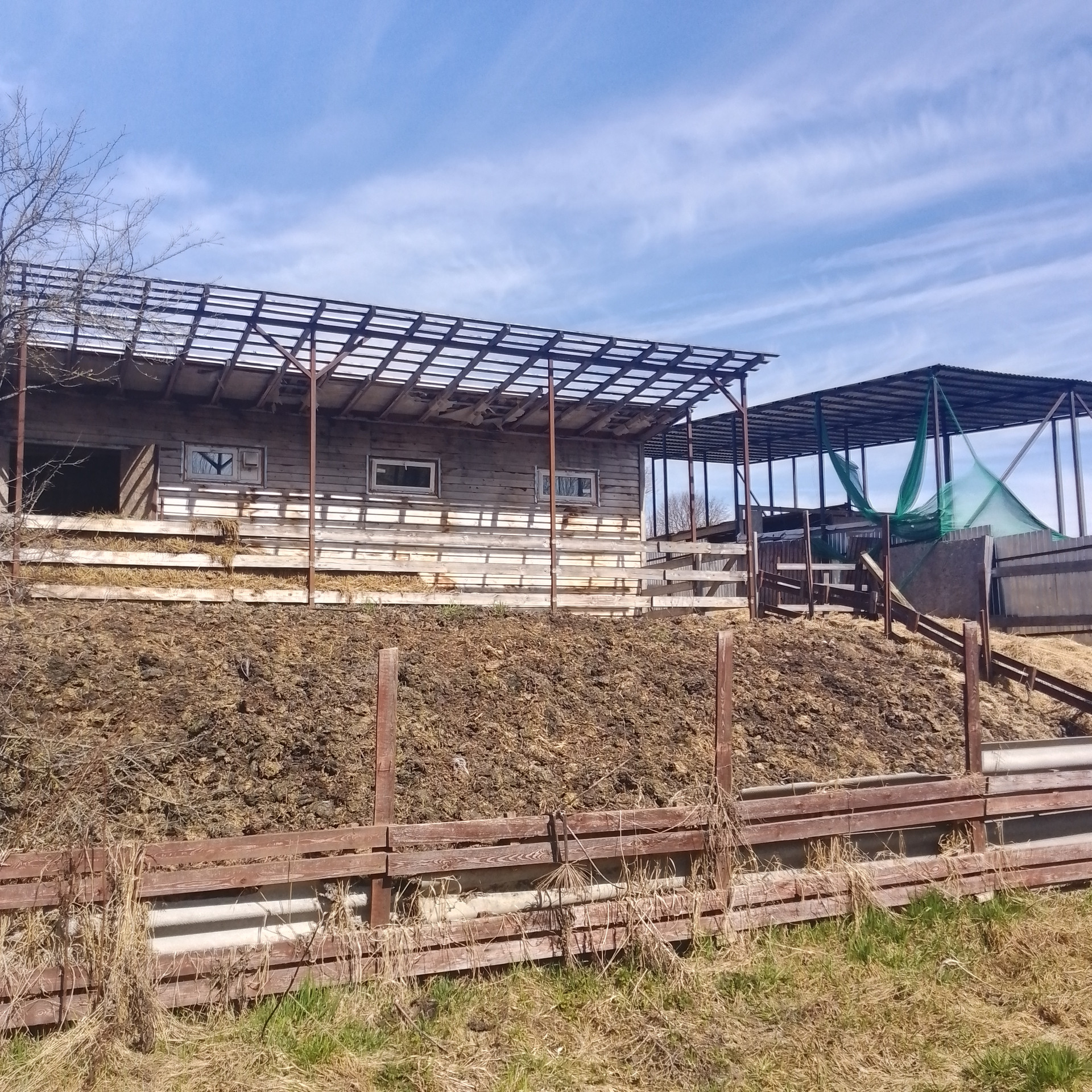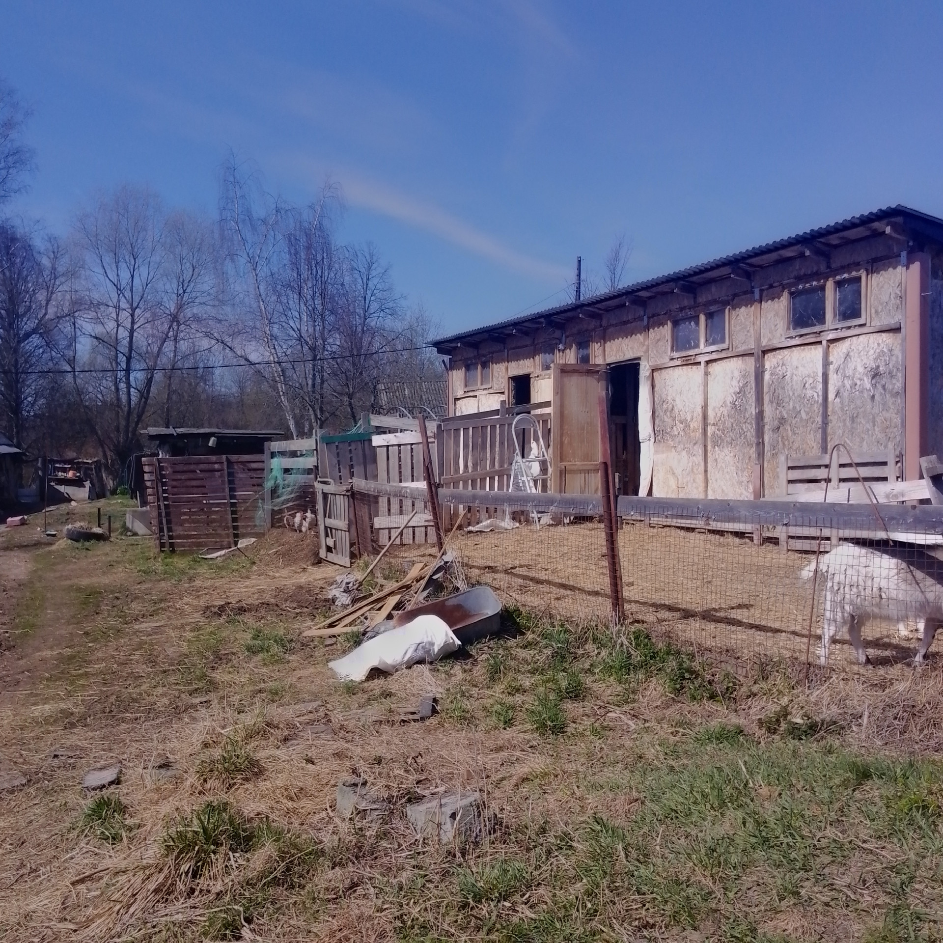 Под фермерское хозяйство: дом (2018 г. постройки, щитовой , утепленный, 2 этажа, свайный фундамент, 2-х контурный котел, отопление - газгольдер 3 куб. м, холодная/горячая вода, канализация - септик) + дом (1956 г. постройки, кирпичный, с деревянной террасой, отполение - печь, площадь 45 кв.м., 1 этаж) + территория 2 га (30 соток - огорожено). На территории - коровник (на 2 дойных головы + телятник, 50 квм, ленточный фундамент, стены - керамзитобетон с утеплителем ), козлятник (32 кв.м, свайный фундамент, стены утепленные), курятник (8 кв.м.), сенник (высота 6м, габариты 15х6 м), колодец, скважина. Территория расположена на краю деревни, ближайшие соседи - 80м. Территория площадью 1,7 га использовалась под выпас. На краю деревни в непосредственной близости - поле 36 га, земля сельхозназначения, для нужд КФХ (муниципальная, можно взять официально в аренду)