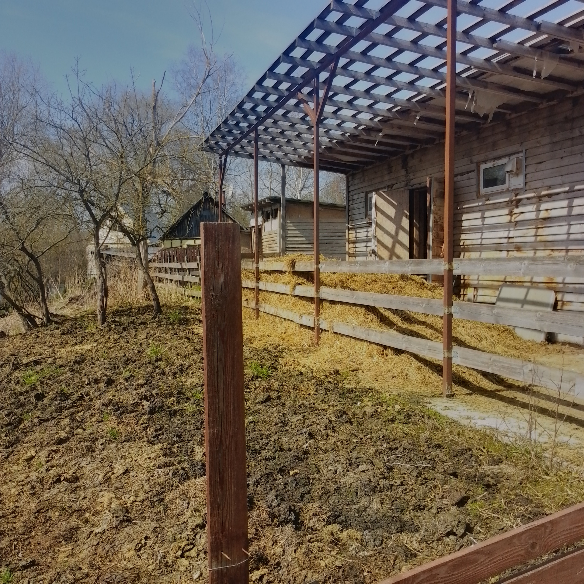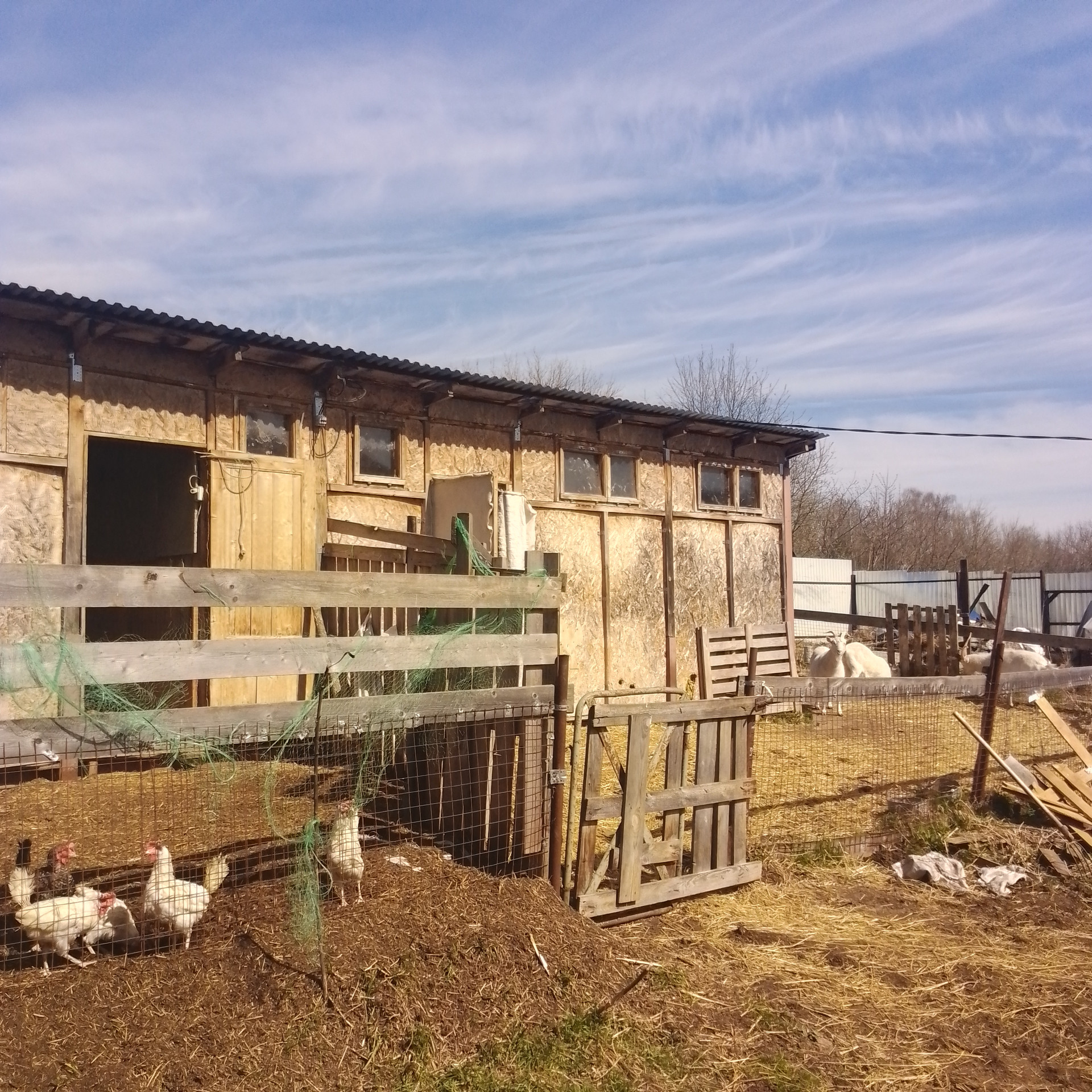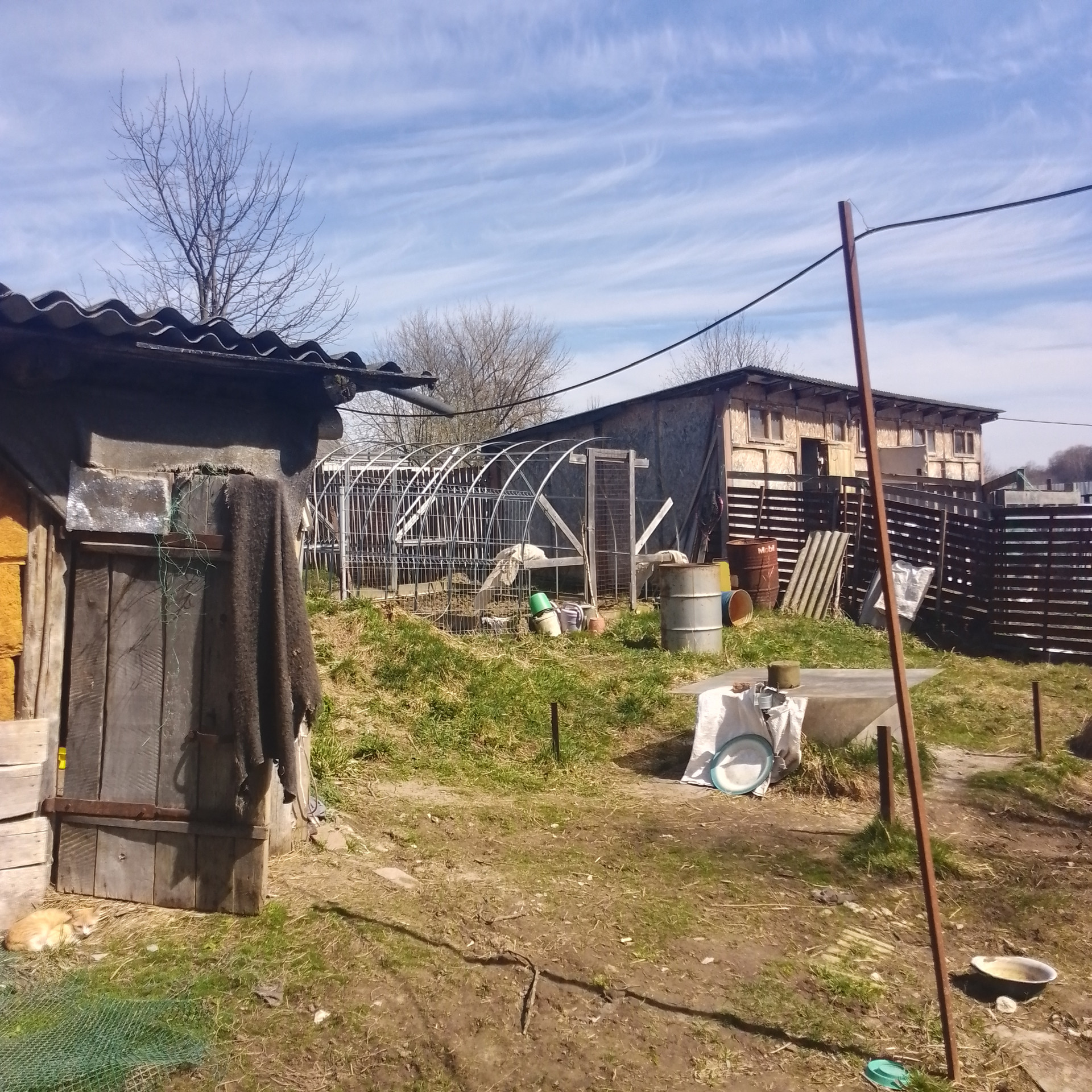 Под фермерское хозяйство: дом (2018 г. постройки, щитовой , утепленный, 2 этажа, свайный фундамент, 2-х контурный котел, отопление - газгольдер 3 куб. м, холодная/горячая вода, канализация - септик) + дом (1956 г. постройки, кирпичный, с деревянной террасой, отполение - печь, площадь 45 кв.м., 1 этаж) + территория 2 га (30 соток - огорожено). На территории - коровник (на 2 дойных головы + телятник, 50 квм, ленточный фундамент, стены - керамзитобетон с утеплителем ), козлятник (32 кв.м, свайный фундамент, стены утепленные), курятник (8 кв.м.), сенник (высота 6м, габариты 15х6 м), колодец, скважина. Территория расположена на краю деревни, ближайшие соседи - 80м. Территория площадью 1,7 га использовалась под выпас. На краю деревни в непосредственной близости - поле 36 га, земля сельхозназначения, для нужд КФХ (муниципальная, можно взять официально в аренду)