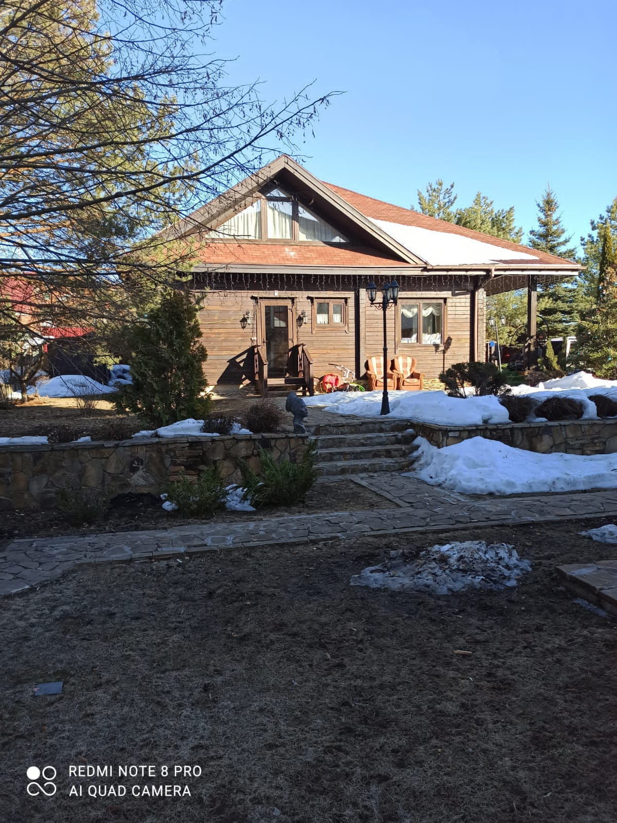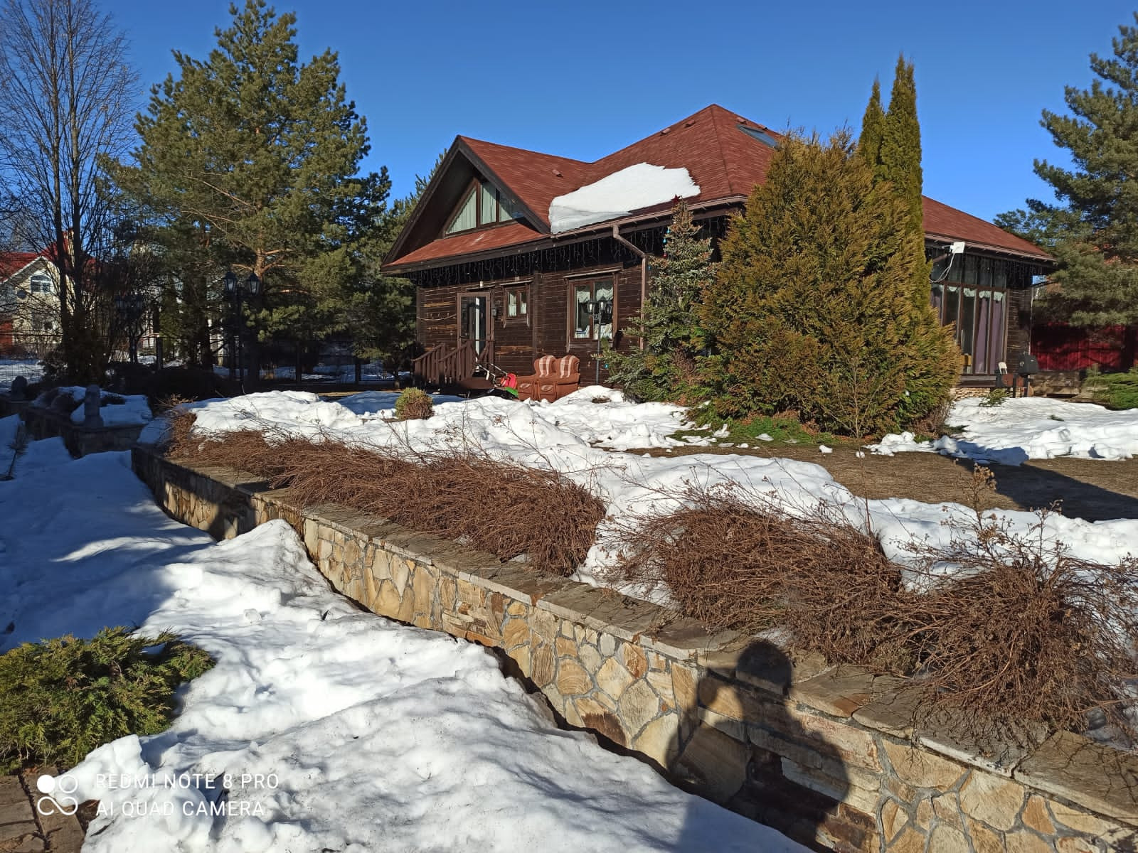 На участке газон и есть лес, состоящий из можжевельников, сосен и голубых елей. Всегда свежий воздух. И проблем с уходом нет, т.к. есть садовник.