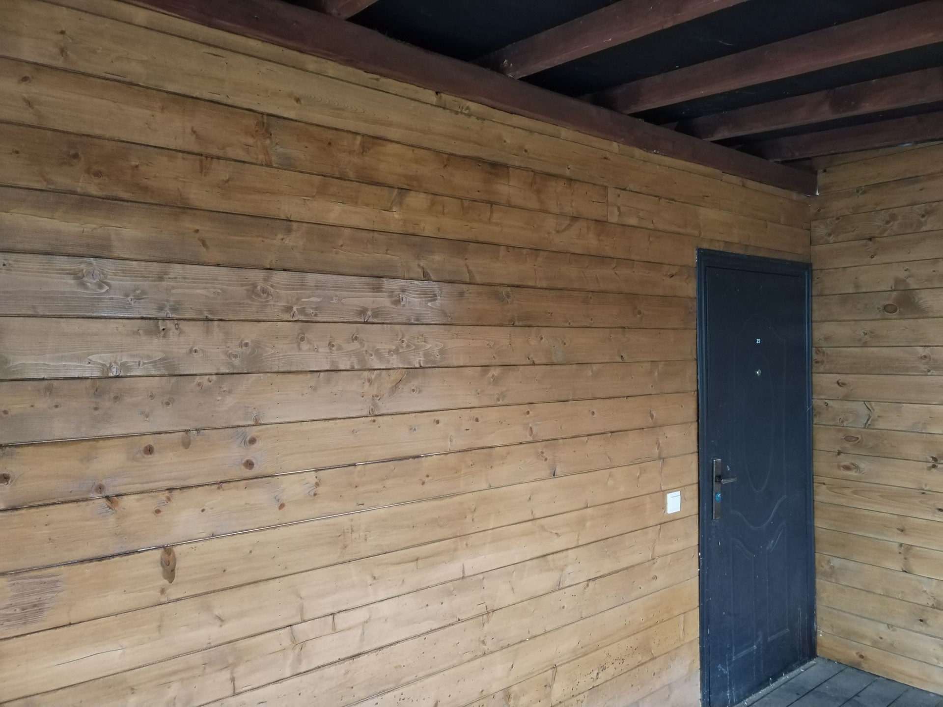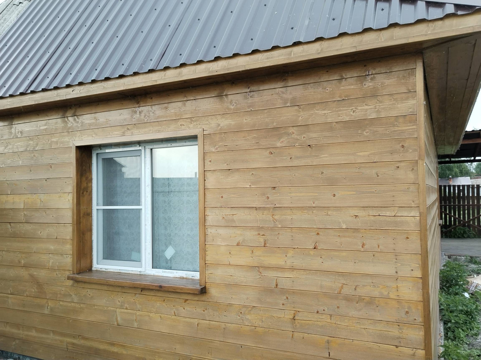 Дом утеплен изнутри и снаружи, облицован евровагонкой, покрыт пропитками и лаком на несколько слоев.