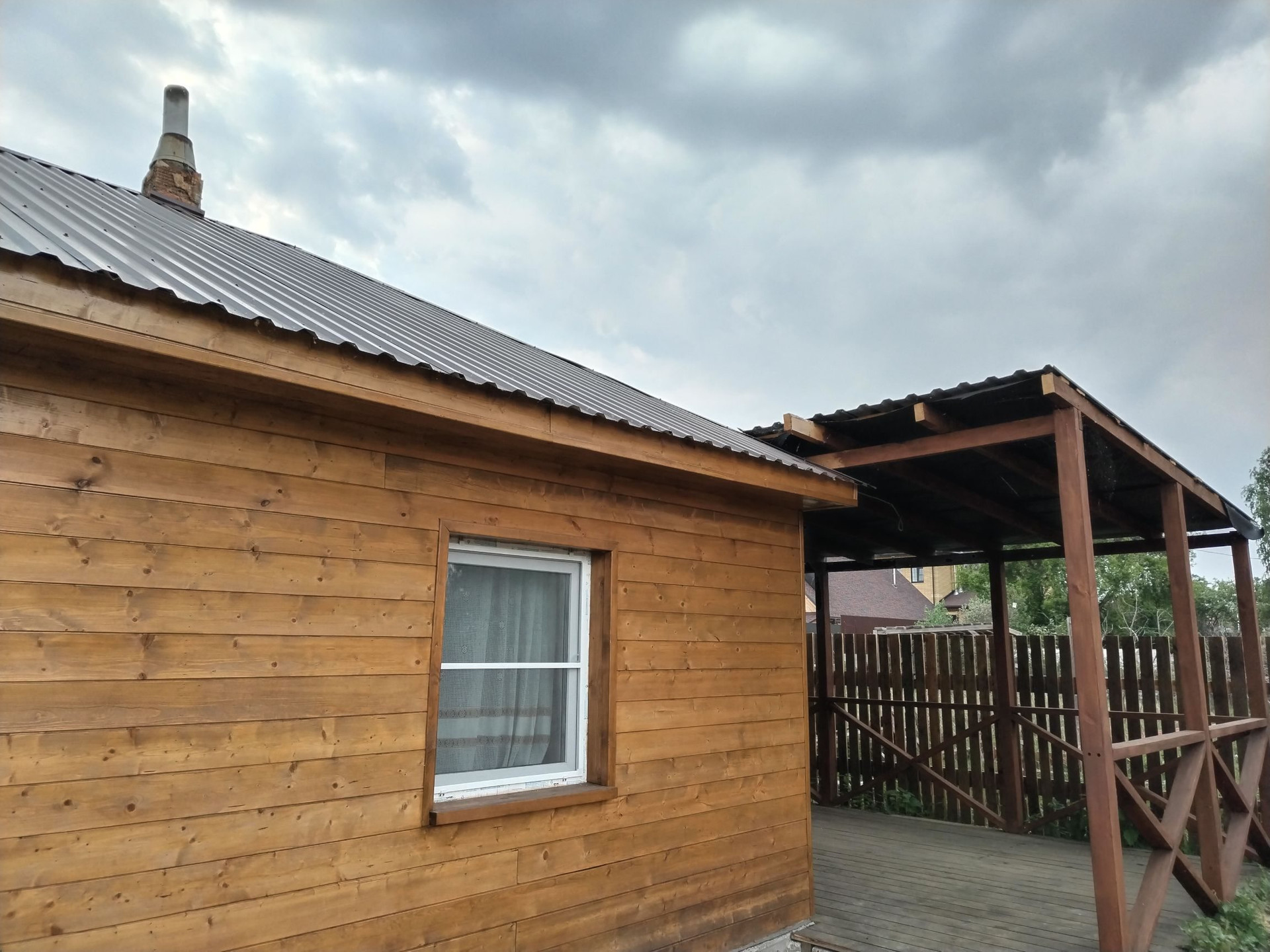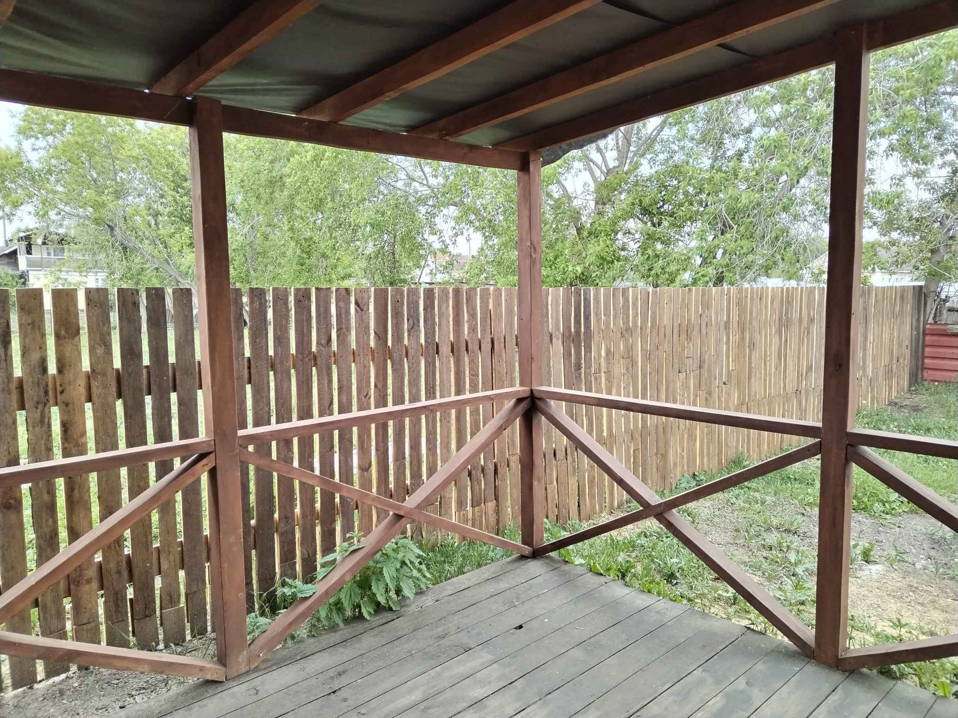 Около домика построена уютная верандочка.