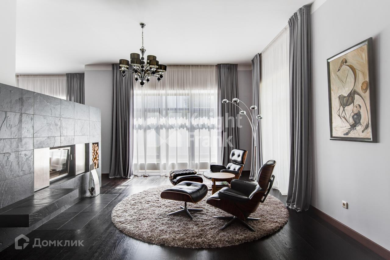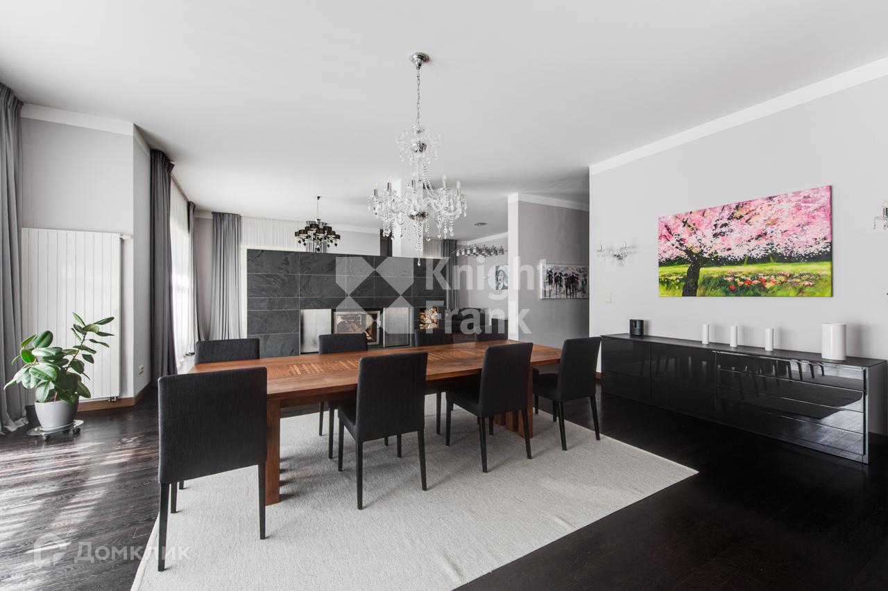 Внутри выполнен дизайнерский ремонт в современном стиле преимущественно с использованием натуральных материалов: стены - фактурная покраска, полы - массив дуба, авторские двери шпон палисандра (дизайн ЗЕБРАНО), подоконники - гранит, авторский камин Biofire Австрия, мебель - Италия, Япония, Германия, ковры - натуральная шерсть и шелк, сантехника и мебель в с/у Villeroy&Boch и смесители Hansgrohe (Германия), кухня Haecker (Германия) с техникой Miele, прачечная с техникой Miele.