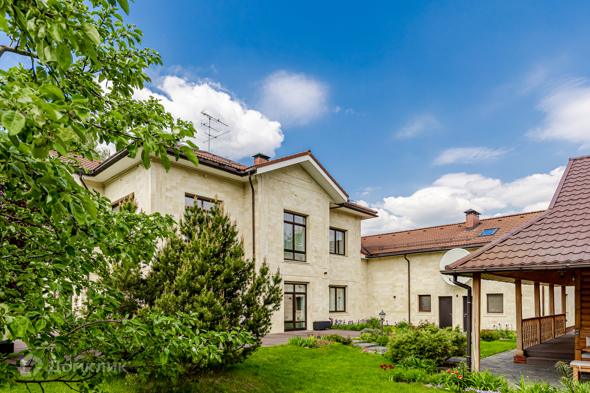 Профессиональные ландшафтный дизайн и благоустройство участка. Взрослые и дорогостоящие, декоративные деревья и кустарники; плодовые деревья и ягодные кустарники; небольшой огород. Размещена крытая оборудованная зона барбекю, вымощенная натуральным камнем шунгит из Карелии, авторская мебель, коптильня. Отдельный дом с сауной и бассейном с противотоком и ультрафиолетовой очисткой воды. Теплый гараж на две машины, над ним квартира для персонала 70м2 с отдельным входом. Бережный уход за домом и техникой, все практически в идеальном состоянии.