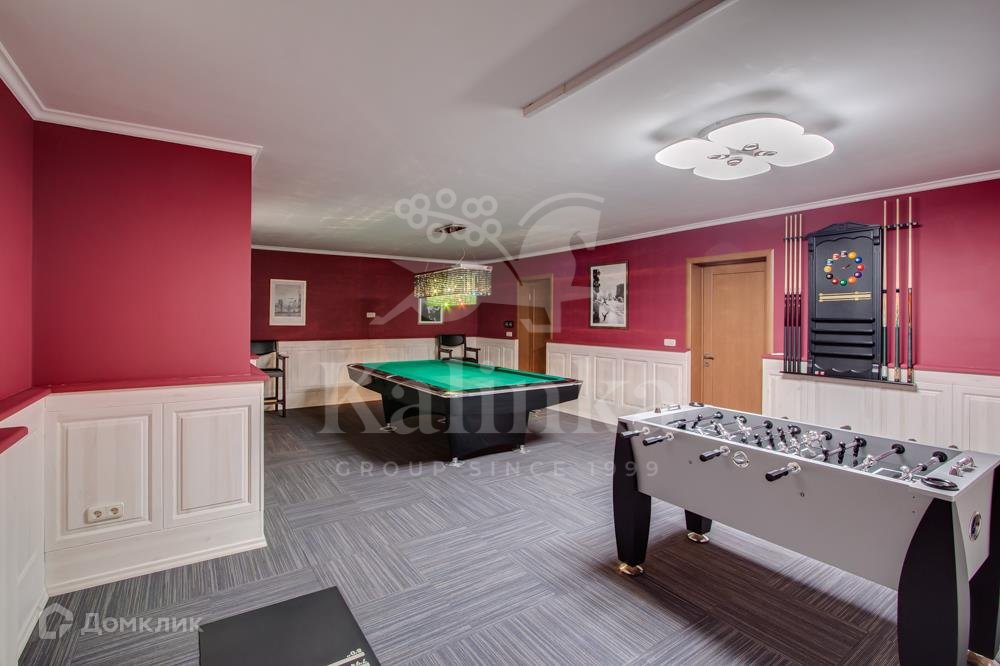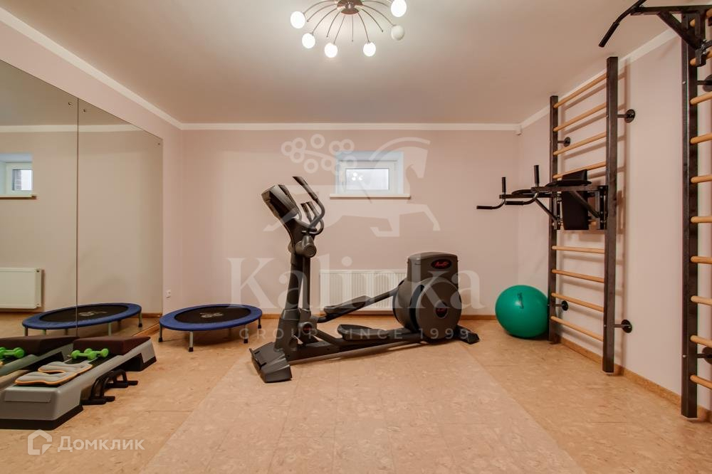 Цокольный этаж: спортивный зал с PowerPlate, кардио-тренажером и другими тренажерами; игровая комната с бильярдным столом Dybior Германия, дартс Harrows Англия, футбольный стол Schmidt Германия; винная комната из винтажного кирпича, котельная с отдельным входом и котлом Wolf Германия и многоуровневой системой очистки воды, прачечная с техникой Miele, продуктовая кладовая. Эксклюзивные люстры с компонентами из латуни, костяного фарфора, сусального золота, хрусталя, тематически идеально подобраны в интерьер каждой комнаты.