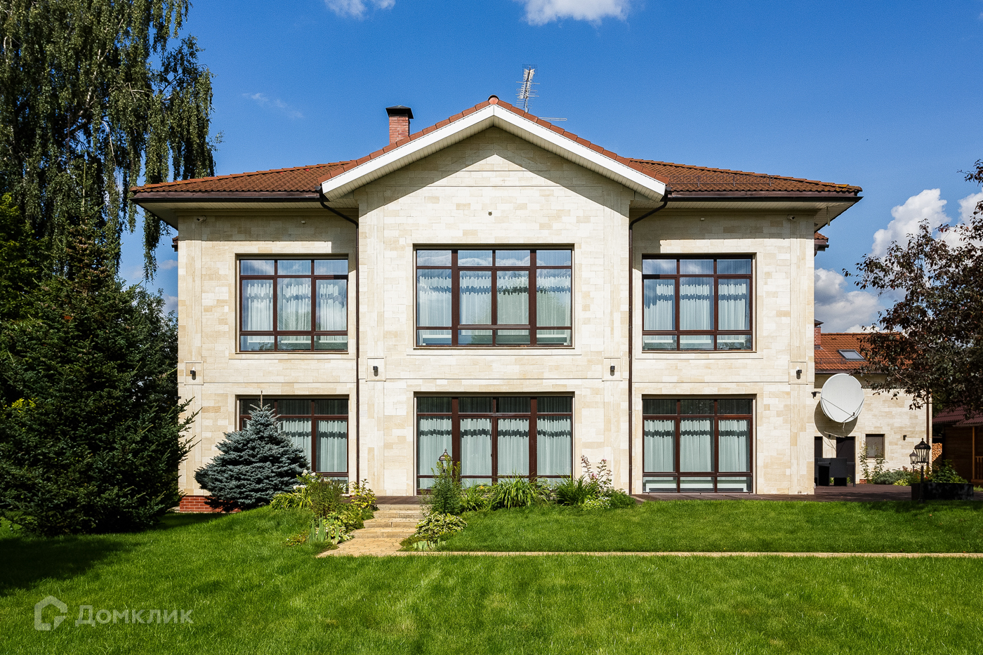 Массивные кирпичные стены с наилучшей тепло- и звукоизоляцией, облицовка дома из натурального камня. Черепица «BRAAS» Германия. Терраса 200кв/м, покрытие Polywood.