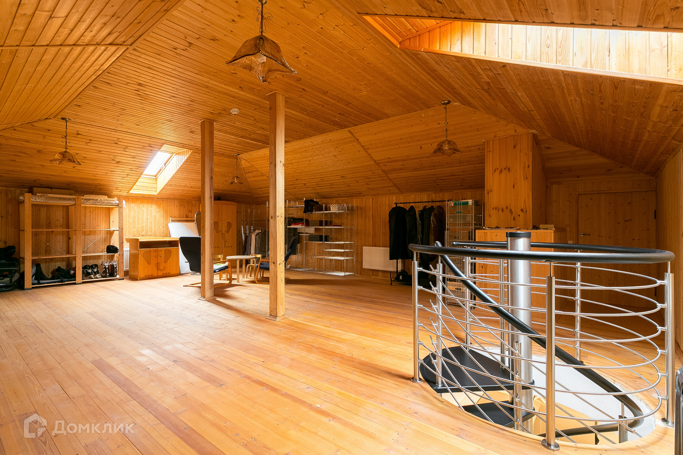 Второй этаж: библиотека/гостиная; две спальни + просторный мастер блок со своей гардеробной и просторным санузлом, из гардероба винтовая лестница на мансарду, отделанная сосновой доской, вторая гардеробная в 70м2, два с/у; кабинет/спальня.