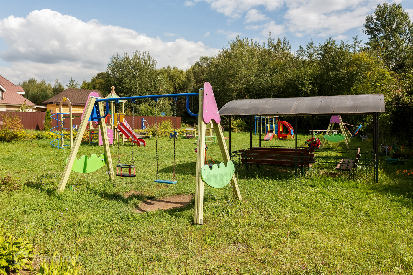 Роскошный участок 24 сотки, профессиональный ландшафтный дизайн и благоустройство. Высажено множество дорогостоящих деревьев и декоративного кустарника. На участке размещена крытая оборудованная зона барбекю, вымощенная натуральным камнем шунгит из Карелии, авторская мебель, эксклюзивная коптильня.