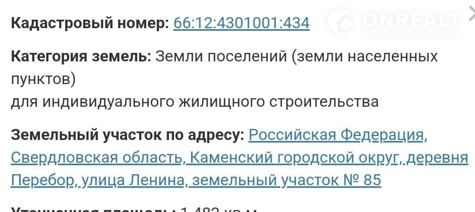 кадacтровой номер: 66:12:4301001:434