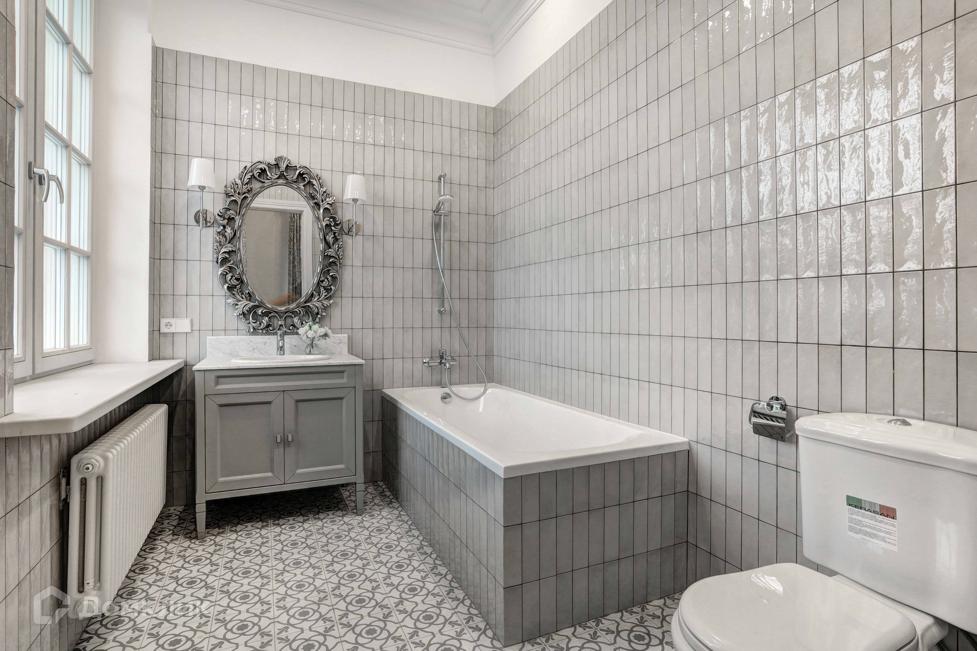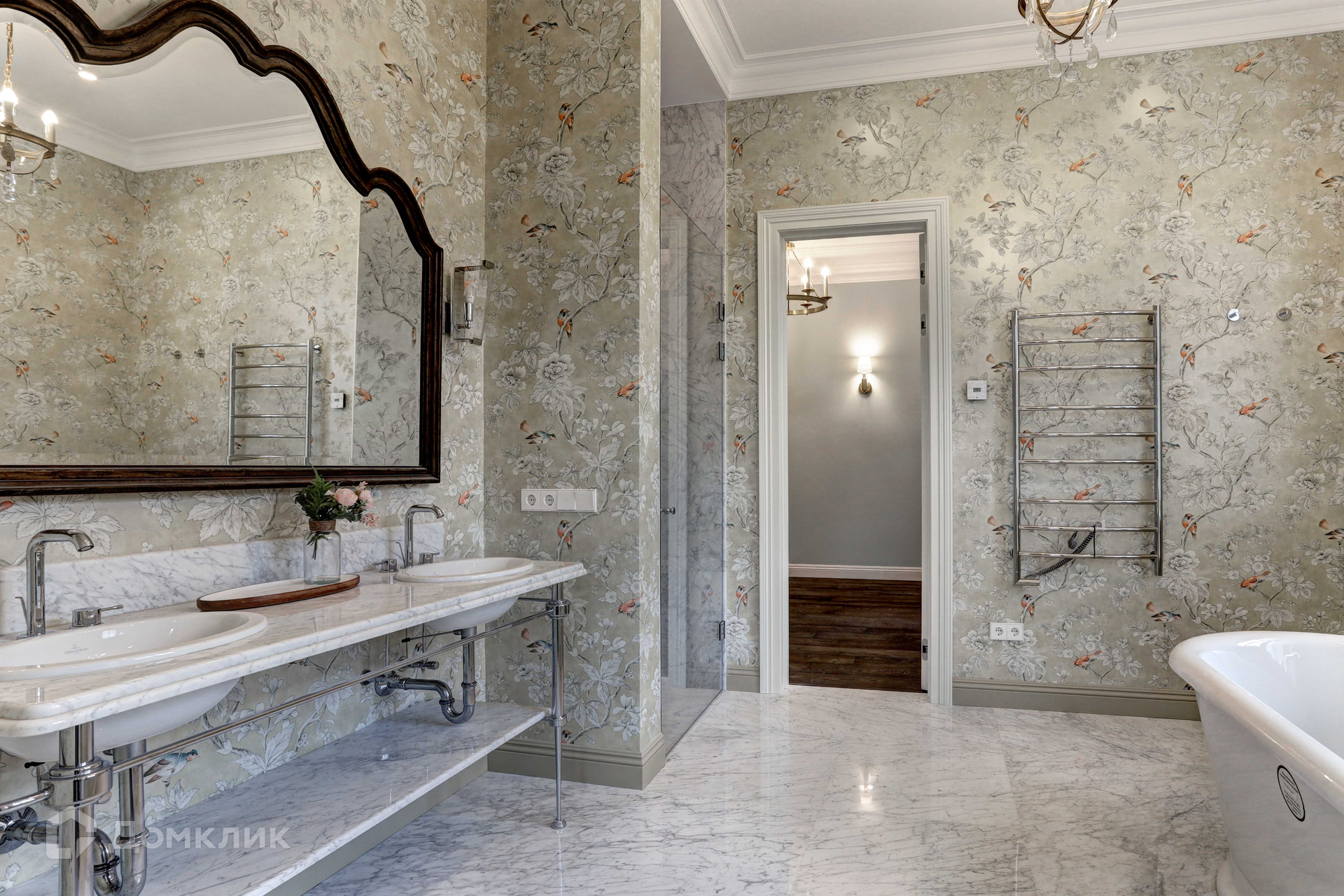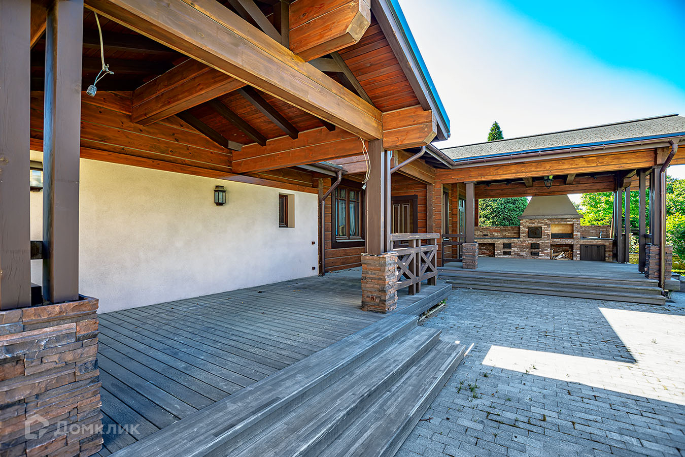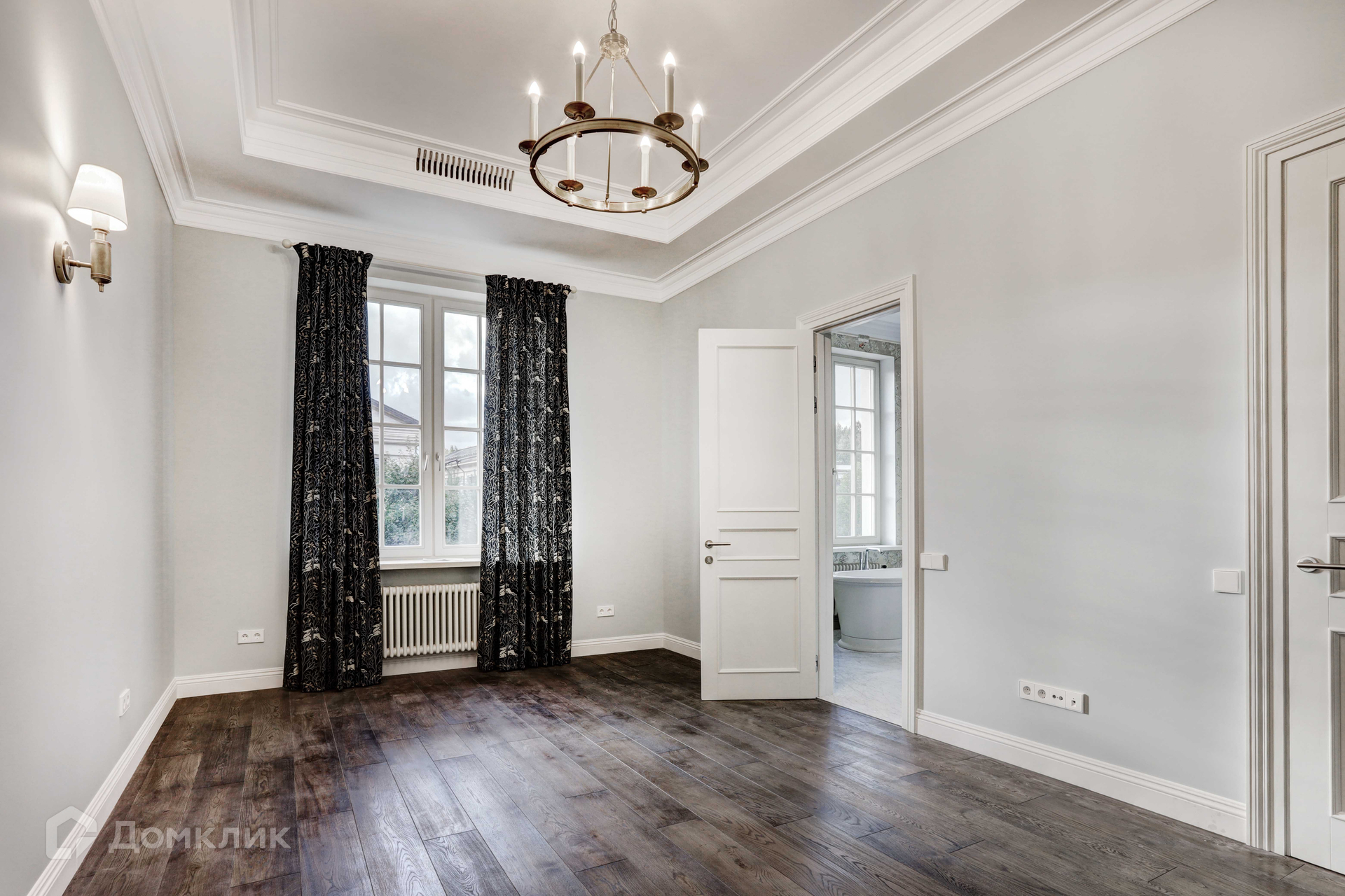 Отделка фасада дома выполнена из натурального камня. В доме 3 этажа, 6 спален, 7 сан узлов. Во внутренней отделке использованы высококачественные материалы лучших европейских/американских брендов, пол входной группы и сан узлов выполнен из итальянского мрамора, дубовый паркет, освещение американской компании Visual Comfort. Спальни второго этажа имеют свои гардеробные комнаты. Из окон открывается вид на английский сад. В доме расположены два камина. В главное гостиной находится антикварный камин из белого мрамора Carrara, на третьем этаже портал из Crema Nuova.Кухня оборудована техникой Miele, холодильники Liebherr. Сантехника Villeroy boch и Grohe.