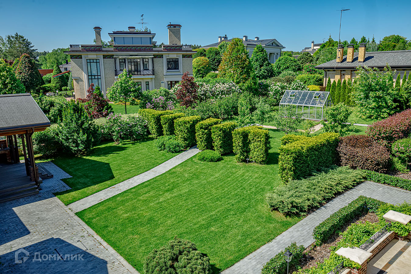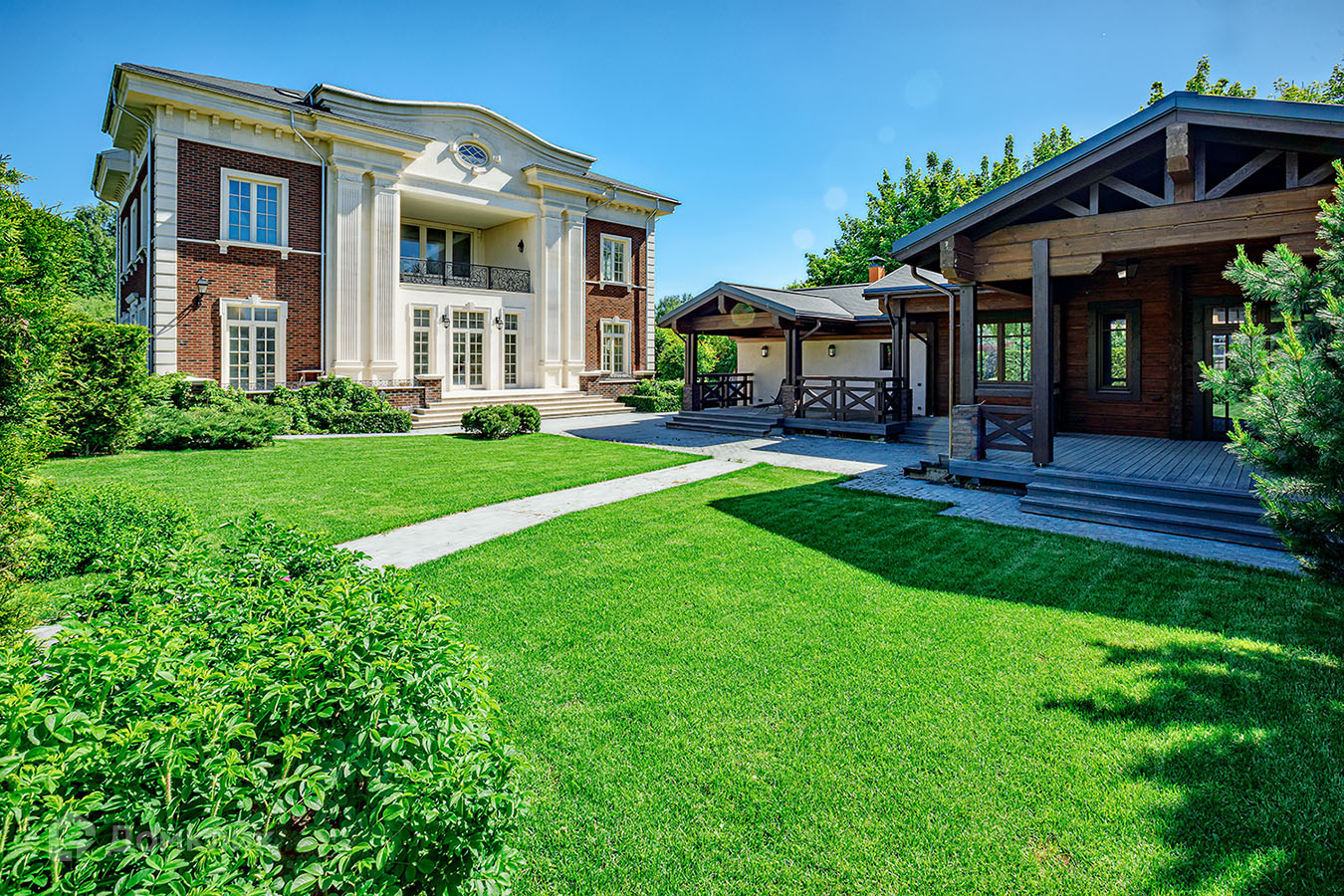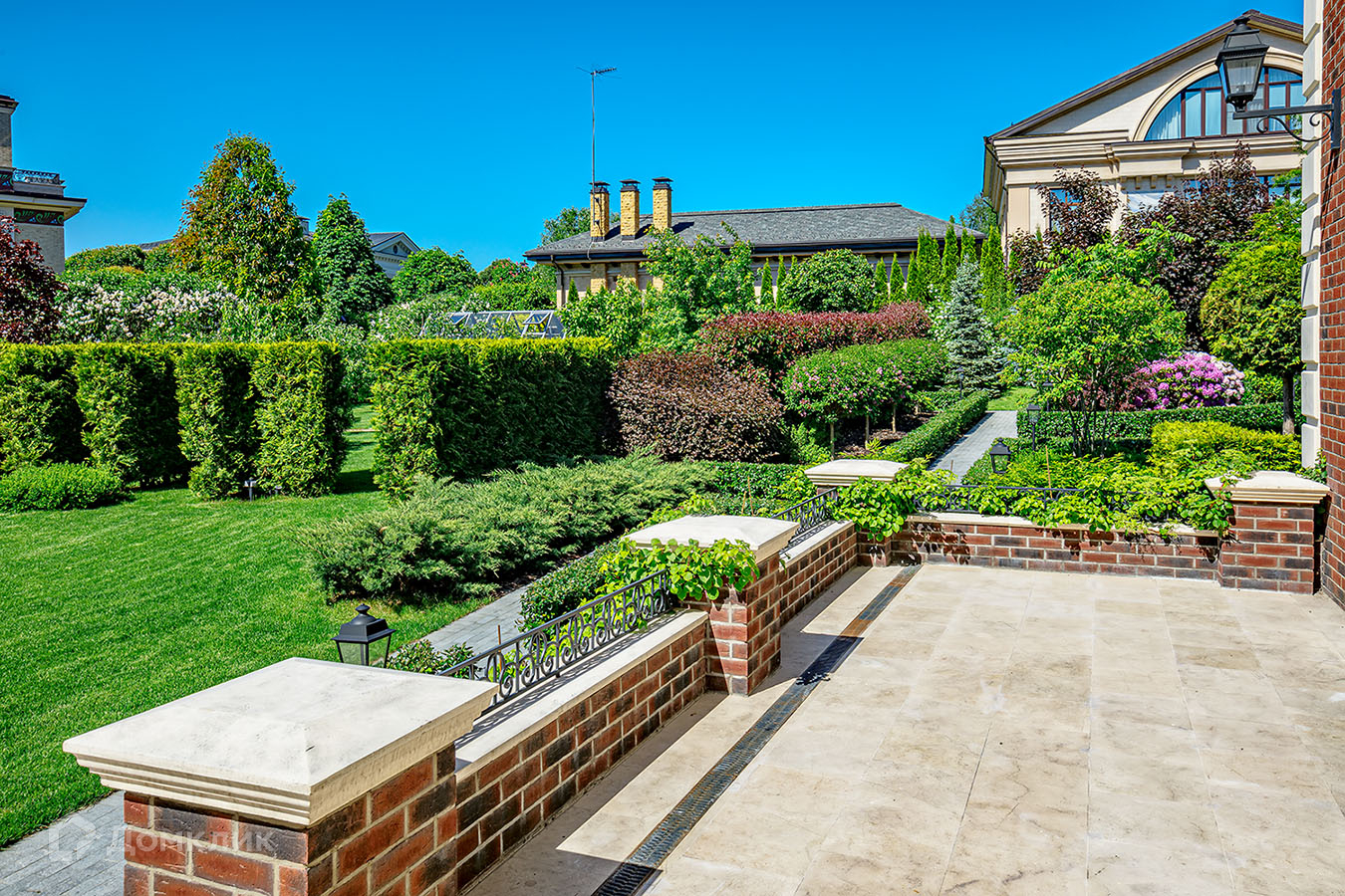 Дом обслуживается инжиниринговой компанией, есть садовник. Проект сада полностью оснащен немецким питомником Lorberg. В ландшафте использован уникальный материал, позволивший создать необыкновенный вечноцветущий пейзаж.Также на участке расположен двухэтажный ГАРАЖ с квартирой для персонала площадью 140 м кв и БАНЯ со СПА зоной и барбекью площадкой общей площадью 180 м кв.