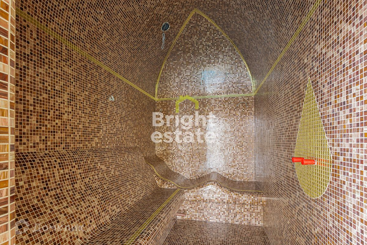 1 этаж: холл, гостиная, столовая, кухня, 3 спальни с с/у, гараж на 2 машины, бассейн, сауна, хамам, душевые, с/у.