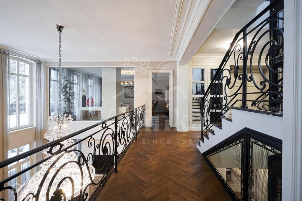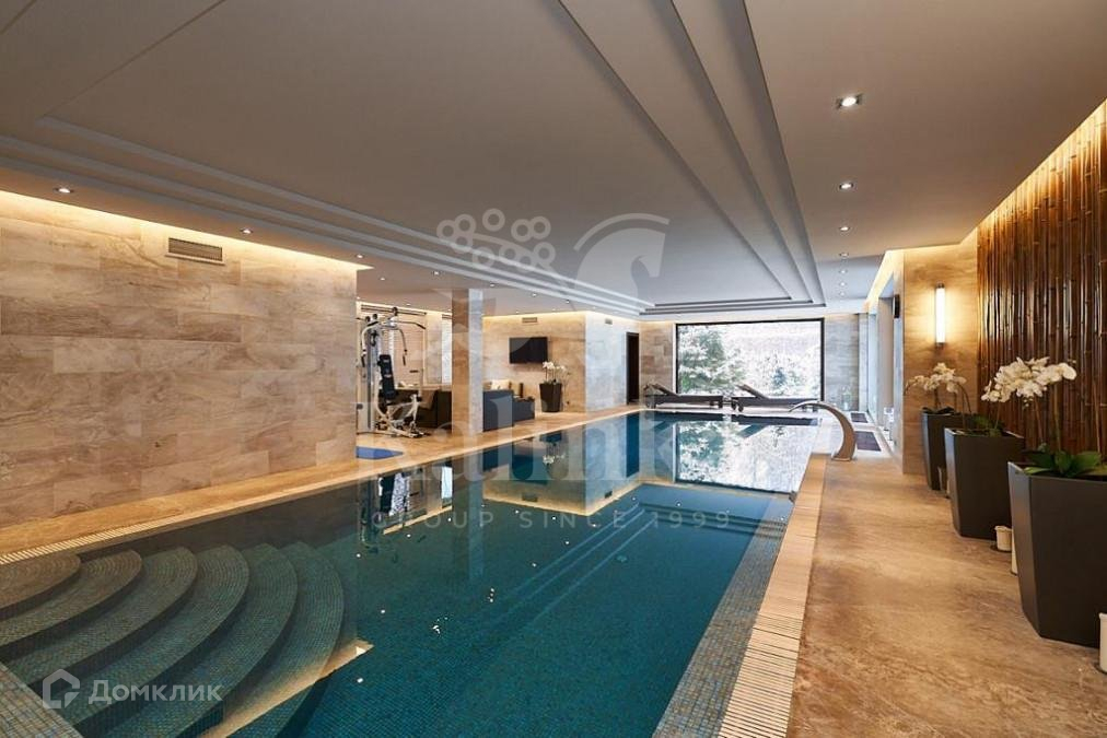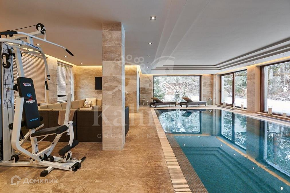 1 этаж: гостиная с камином и вторым светом, кухня, столовая с выходом на террасу, спальня с ванной комнатой и гардеробной, комната для встречи гостей, гараж на 2 м/м, гардеробные и подсобные помещения. SPA-зона: 15-метровый бассейн с уникальной системой очистки, сауна и хамам, тренажерный зал;