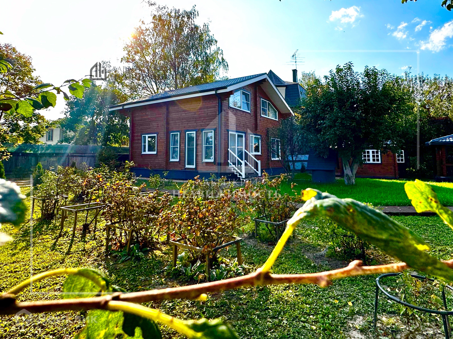 На участке: шикарные большие две березы и каштан, соцветиями которого можно наслаждаться с балкона, сосны и туи (30 штук высажено), сирень, плодовые деревья (яблони, вишня, слива), кустарники (черная и красная смородина, крыжовник, ДВА можжевельника).