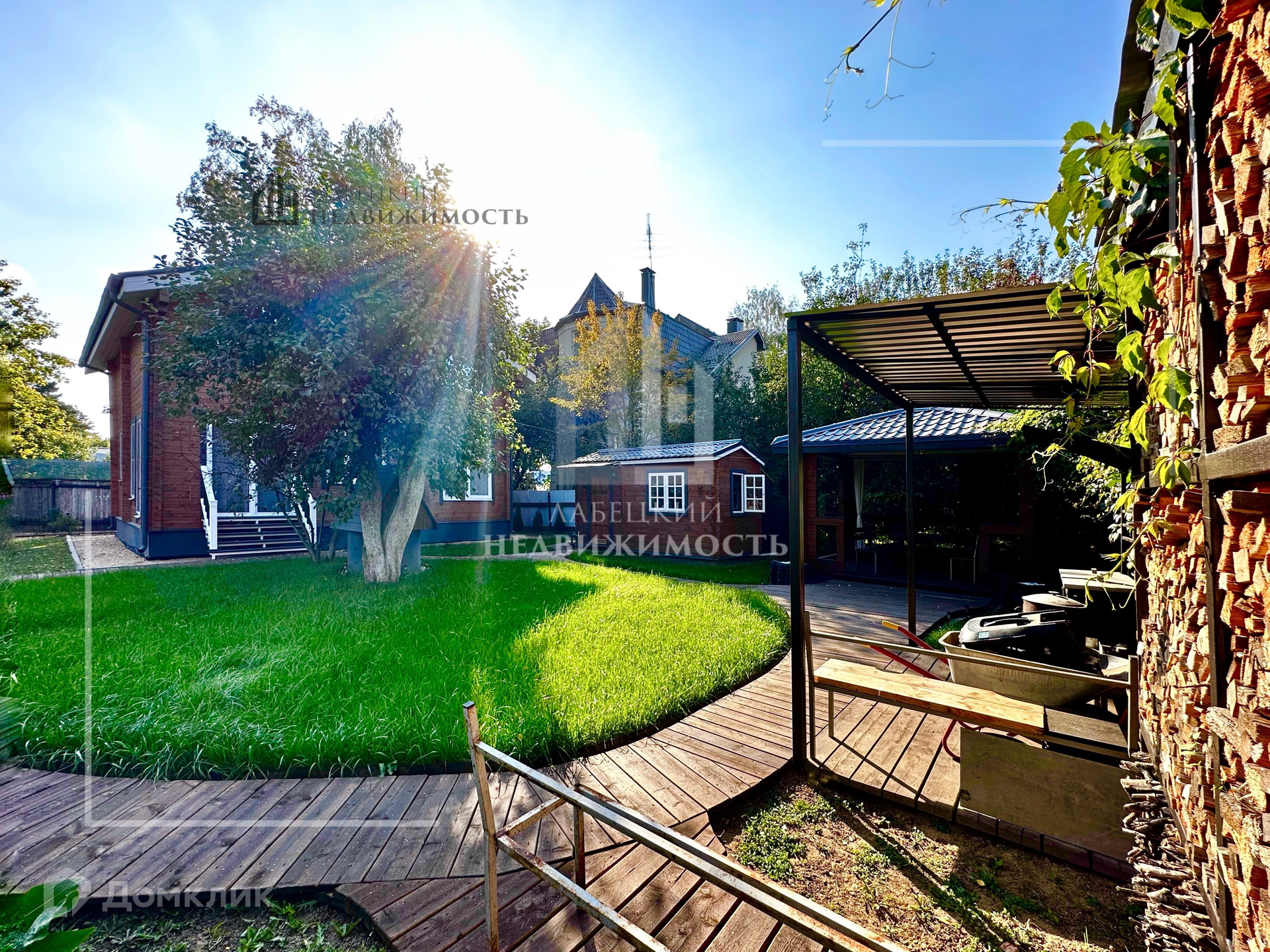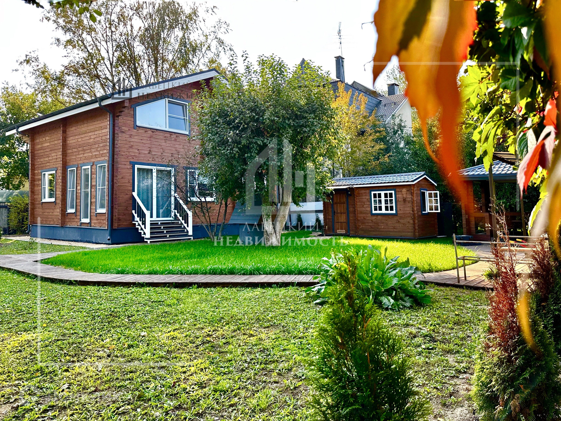 На территории беседка из бруса, котельная НЕ в ДОМЕ!, зона барбекю, автоматические ворота ( проем 5 м.), площадка на 3-4 автомобиля.