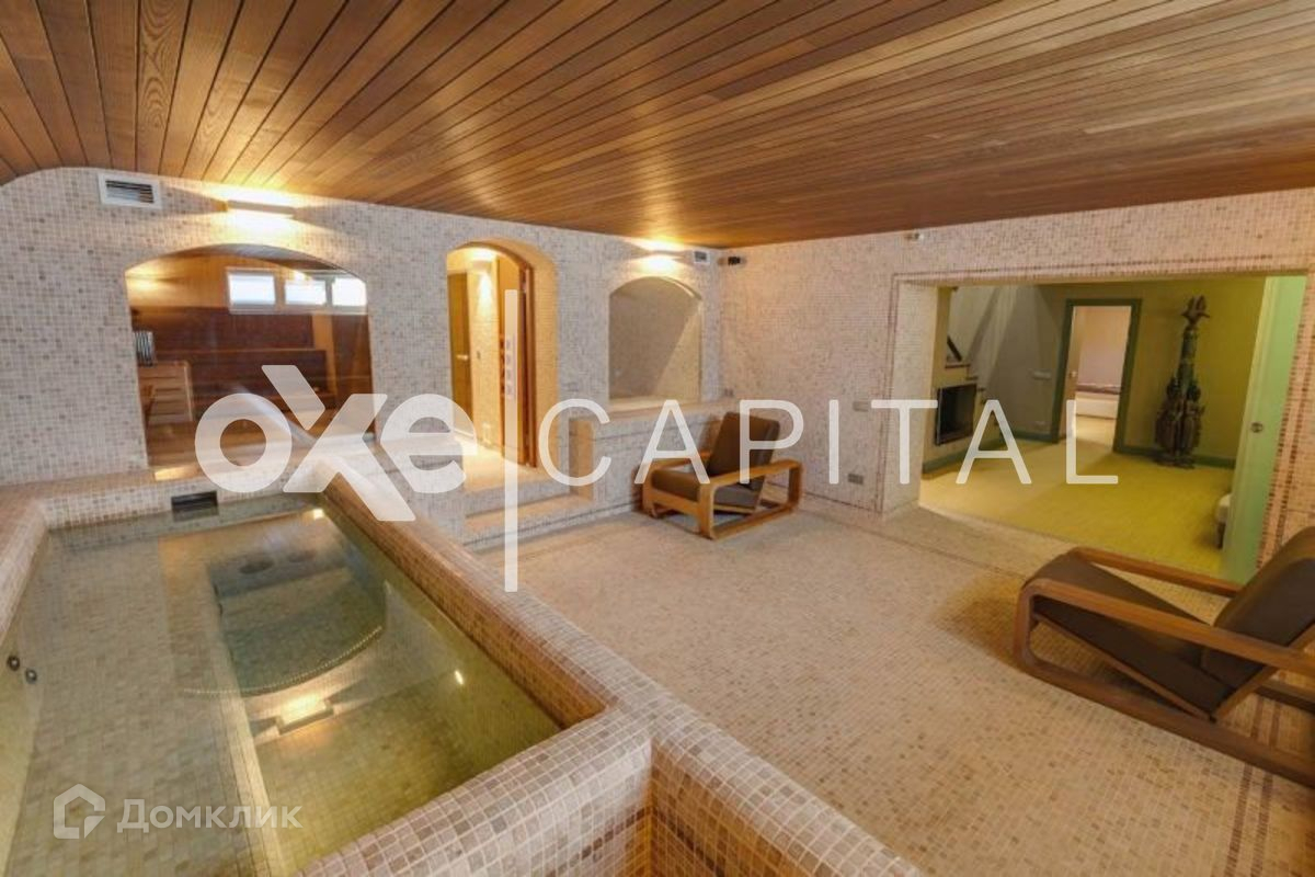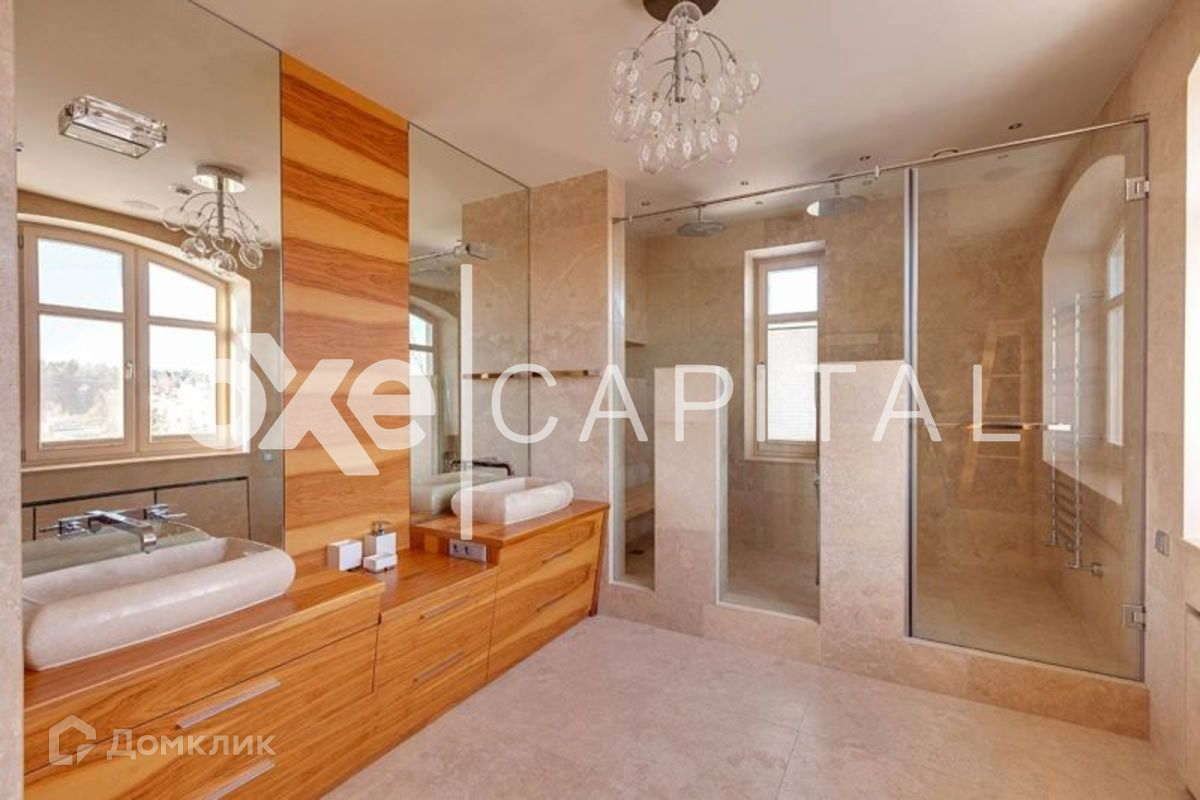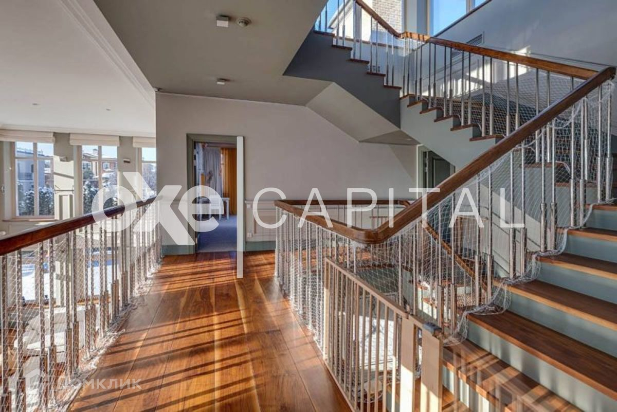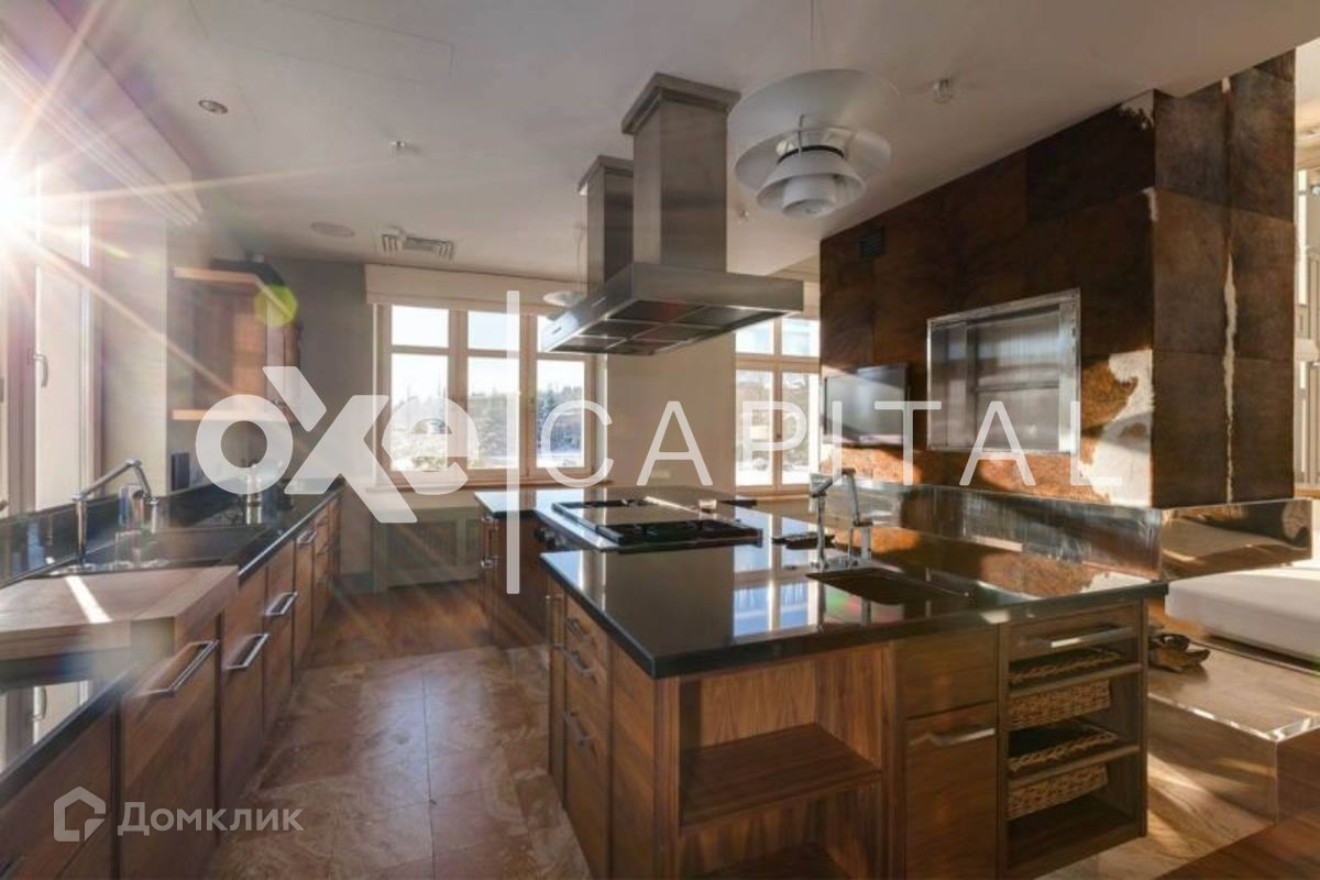 Лот №d813  Изысканный  особняк выполнен в современном стиле. Интерьеры отличается лаконизмом и функциональностью. Четкие прямые линии и светлые тона гармонизируют пространство и наполняют дом светом. В отделке использованы высококачественные материалы, в частности, пол выполнен из американского ореха. Уникальным украшением гостиной является авторский 7-метровый камин. В особняке установлена система «умный дом», которая управляется с помощью Ipad. Цоколь: гостевая спальня с ванной комнатой, SPA-зона (турецкая и финская сауны, купель, массажная, санузел, душевые). 1 этаж: встроенный лифт для подачи еды с кухни, профессиональный домашний кинотеатр, каминная зона с авторским 7-ми метровым камином, столовая, кухня (Miele), комната с ванной комнатой, комната с гардеробной и ванной комнатой. 2 этаж: гостевая с ванной комнатой, детская с ванной комнатой и игровой комнатой, оснавная спальня с гардеробной и 2-мя ванными комнатами, кабинет. 3 этаж: комната отдыха (йога, тренажерный зал). 3 м/м.