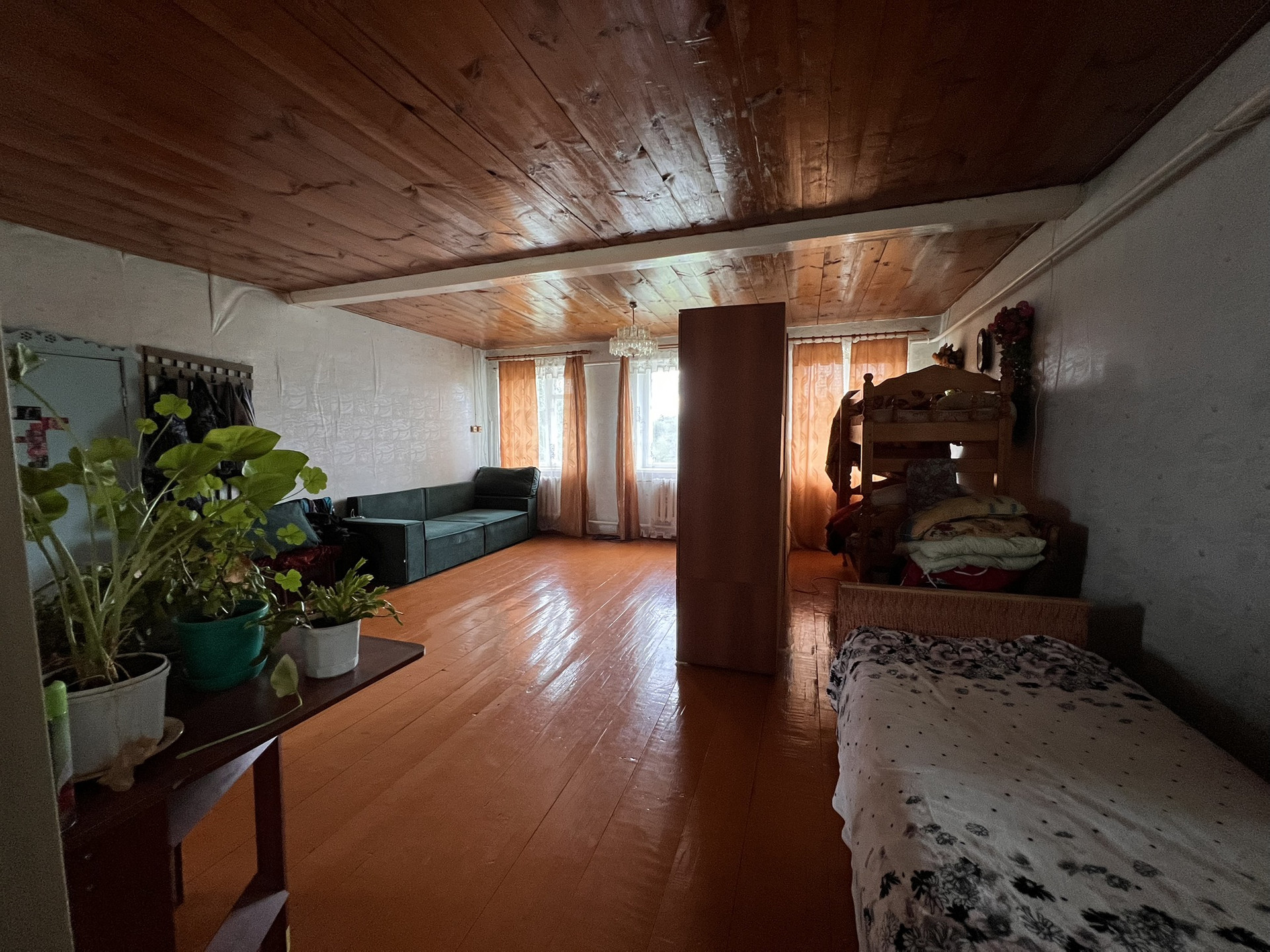 Продам дом, один собственник, отопление газовое, есть переход на отопление печью. В доме свободная планировка, можно зонировать на свое усмотрение, предполагался второй этаж, если есть желание строить, то это для вас. Так же имеется электричество и холодная вода в доме, веранда. Кирпичный туалет рядом с постройкой. На участке есть большой сарай для домашних животных и хранения сена, кирпичная постройка для летней кухни, хранения различного инвентаря или оборудования бани. Во дворе много места парковать автомобиль. В огороде растут яблони, малина, крыжовник, часть участка усеяна люцерной. Недалеко от дома есть речка и родник. Магазин в 5 минутах ходьбы. По цене возможен торг.