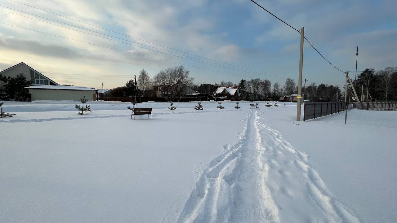 - парковая зона с детской площадкой, скамейками и турниками 100м