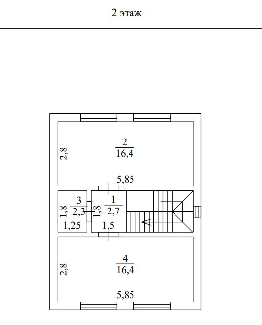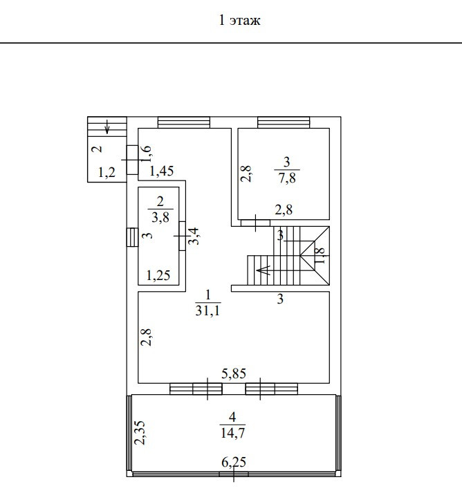 ✓ 3 спальни, 1 сан. узел