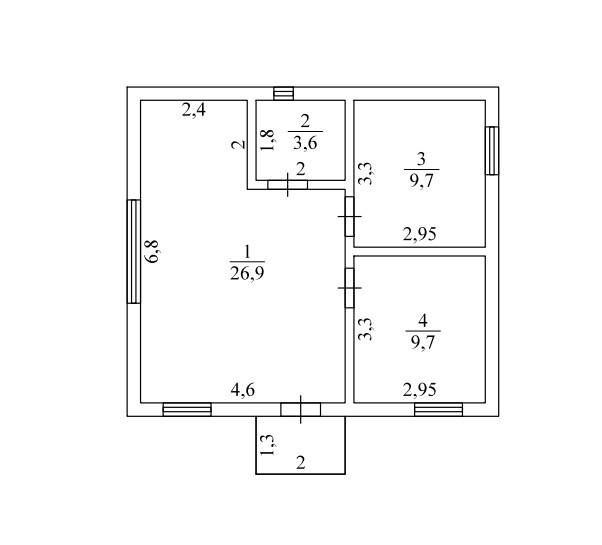 ✓ 2 спальни, 1 сан. узел