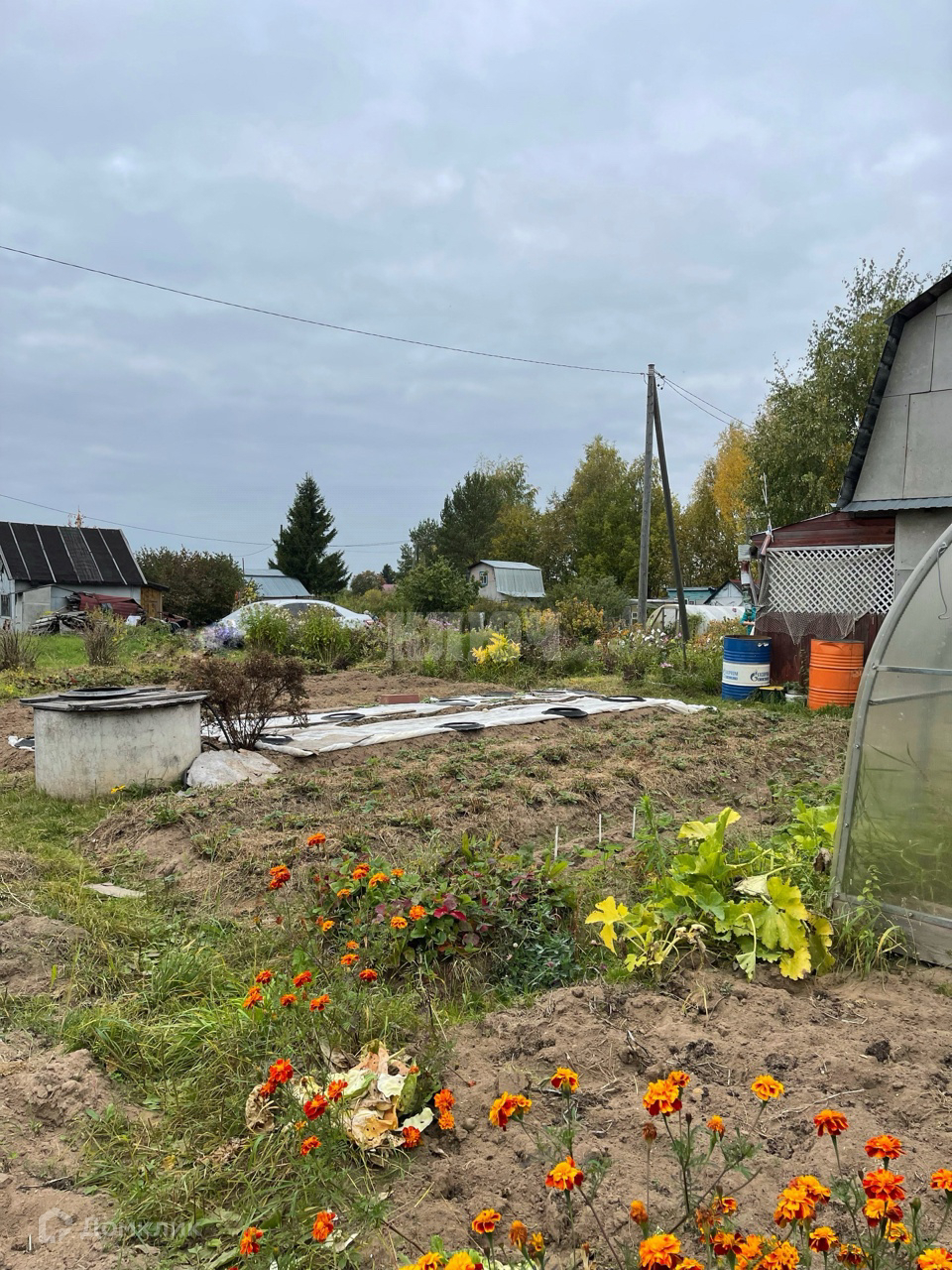 -На участке имеется колодец на 5 колец , кессон, сарай, теплица из поликарбоната, плодово-ягодные насаждения.