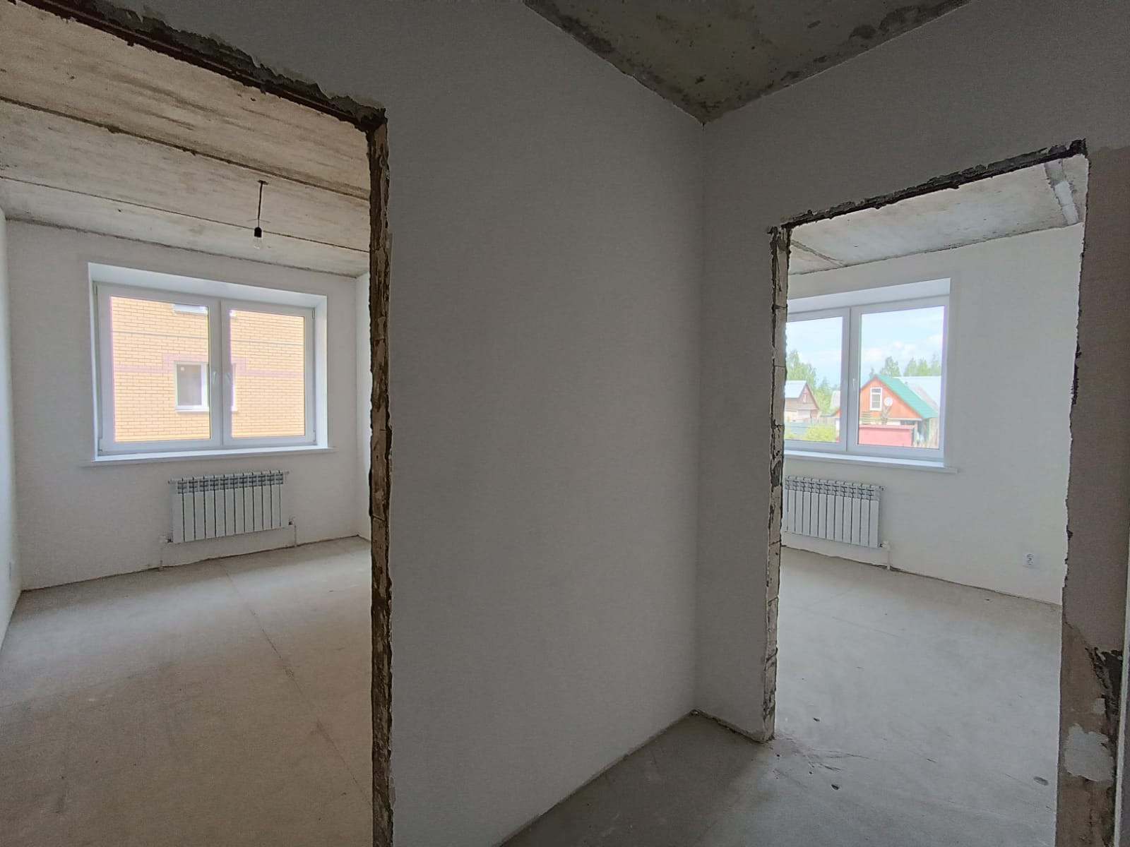Отделка чистовая, те  выровненные и оштукатуренные стены,идеальная стяжка пола, развод электричества,установлены выключатели и розетки, окна ПВХ, застекленный балкон ПВХ,металлическая входная дверь,полностью смонтировано отопления:двухконтурный котёл Аristоn и батареи установлены,установлены все приборы учёта. Вода из артезианской скважины.