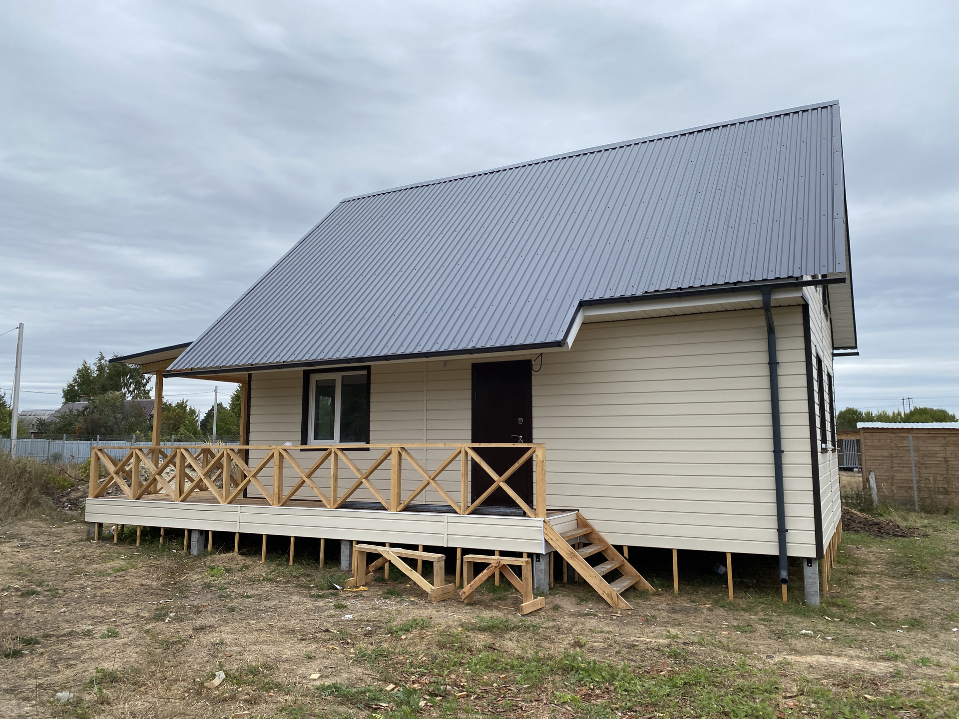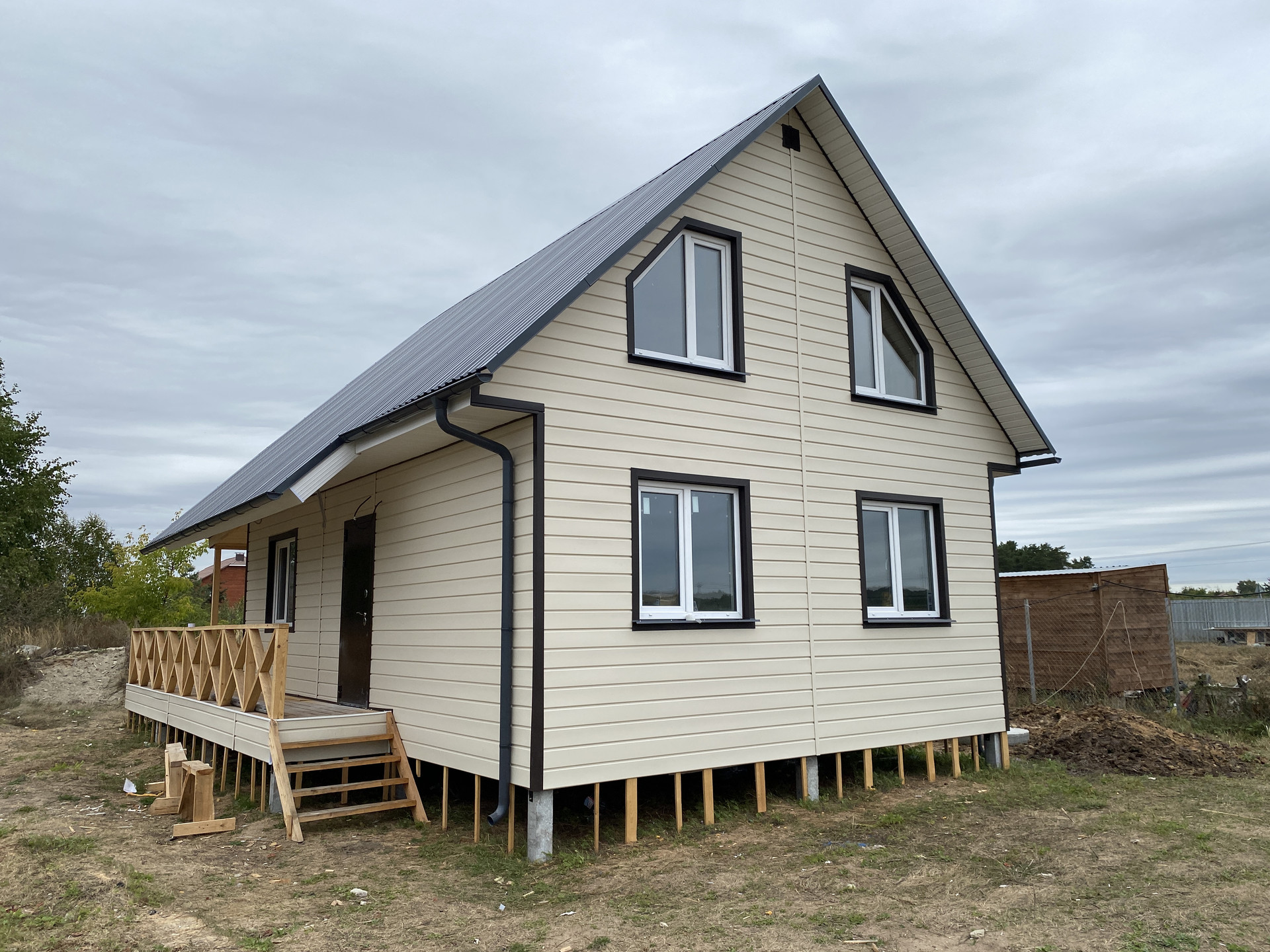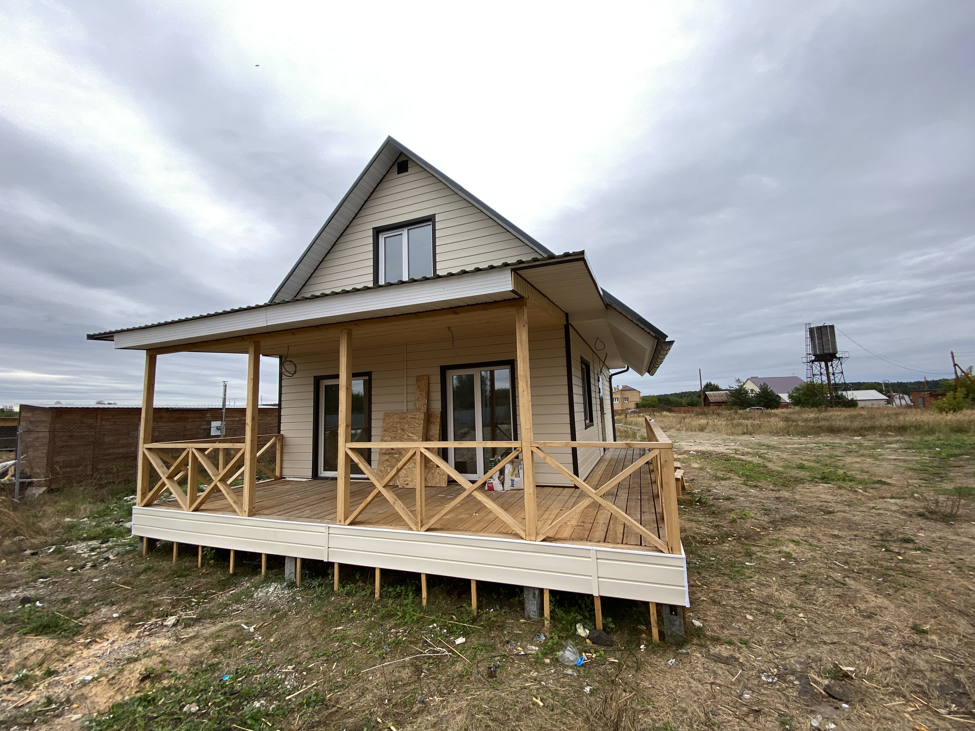 В продаже новый дом со всеми благами.  Дом сделан по каркасной технологии, утепление 150 мм, наружная отделка - сайдинг, фундамент - железобетонные сваи. Общая площадь дома 90 кв.м. (площадь внутренних помещений 72 кв.м., большая открытая веранда 24 кв.м.